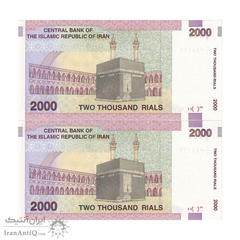 اسکناس 2000 ریال (جعفری - شیبانی) - یک یکم - جفت - UNC64 - جمهوری اسلامی