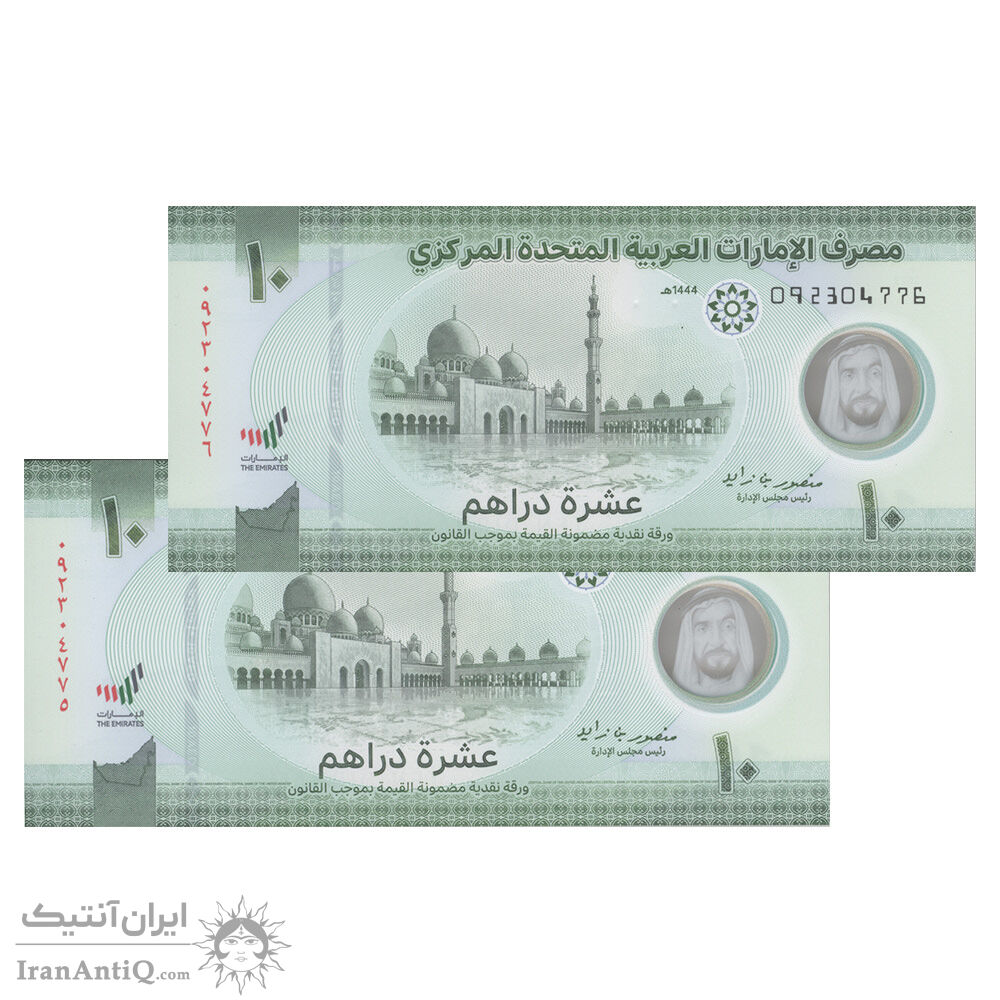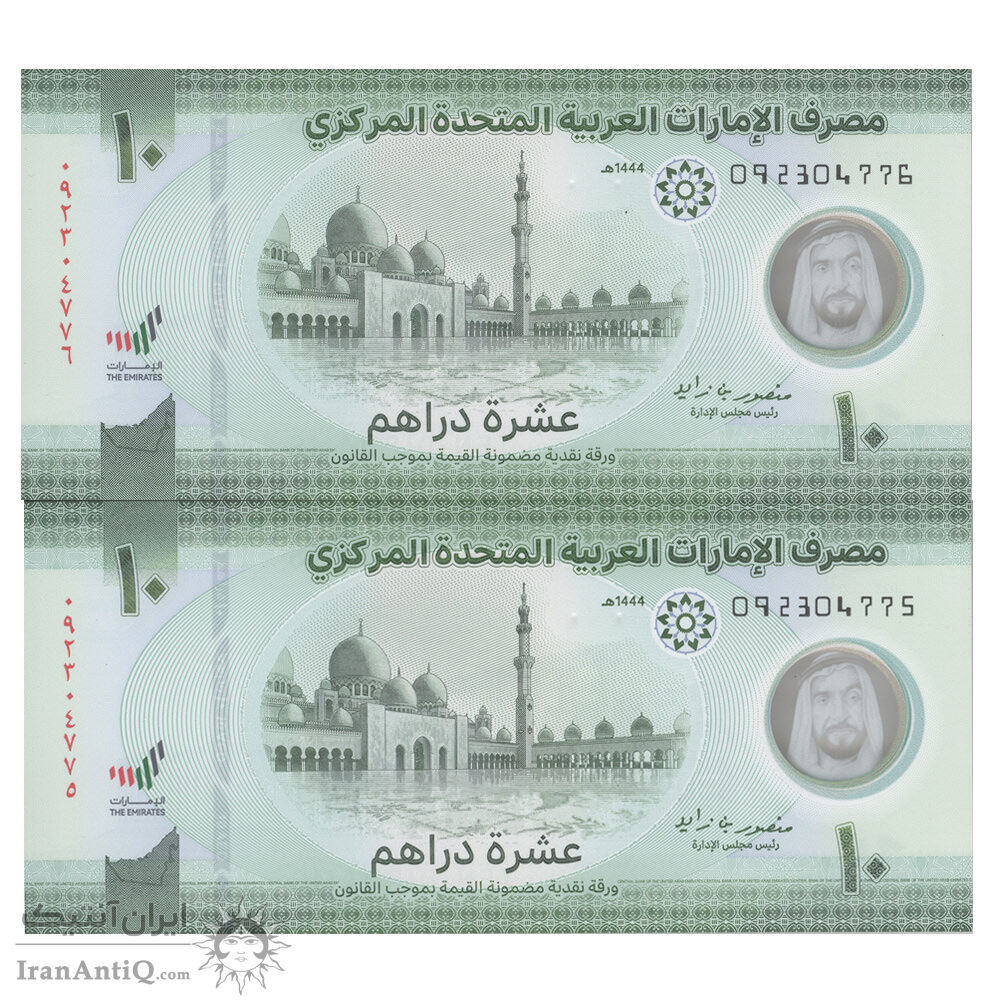 اسکناس 10 درهم 1444 (2023) خلیفه بن زاید آل نهیان - جفت - UNC65 - امارات متحده عربی