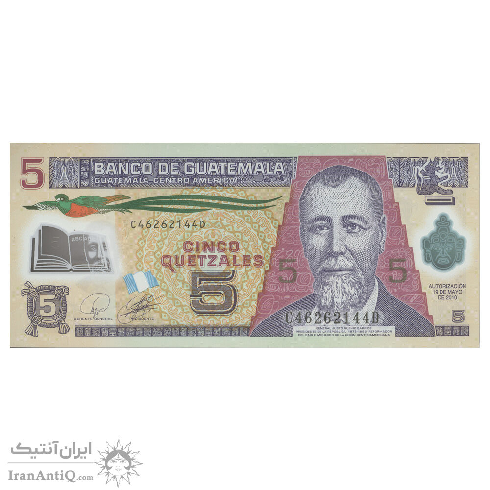 اسکناس 5 گواتزال 2010 جمهوری - تک - UNC65 - گواتمالا
