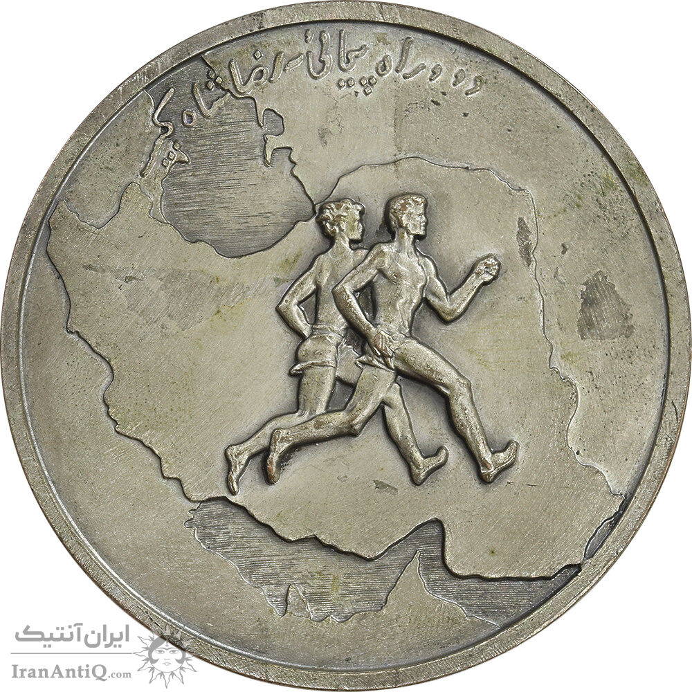 مدال یادبود فدراسیون تیراندازی ایران - دو و راهپیمایی رضا شاه - AU50 - محمد رضا شاه