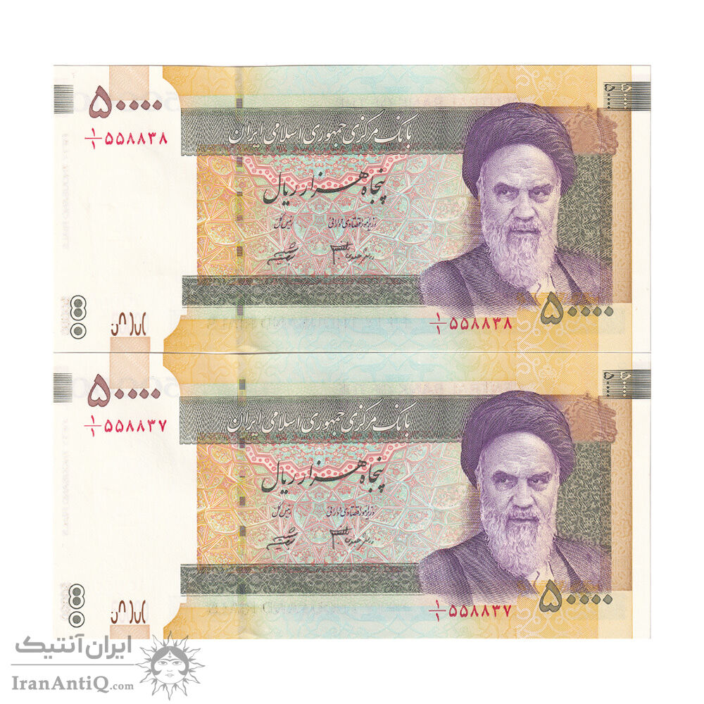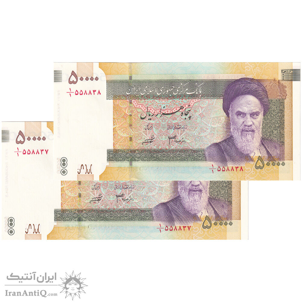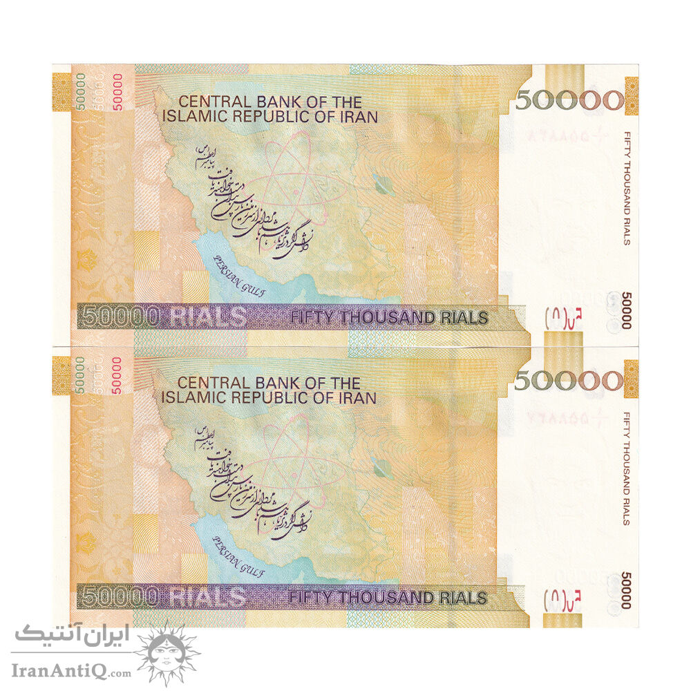 اسکناس 50000 ریال (جعفری - شیبانی) فیلیگران 50000 بزرگ - یک یکم - جفت - UNC63 - جمهوری اسلامی