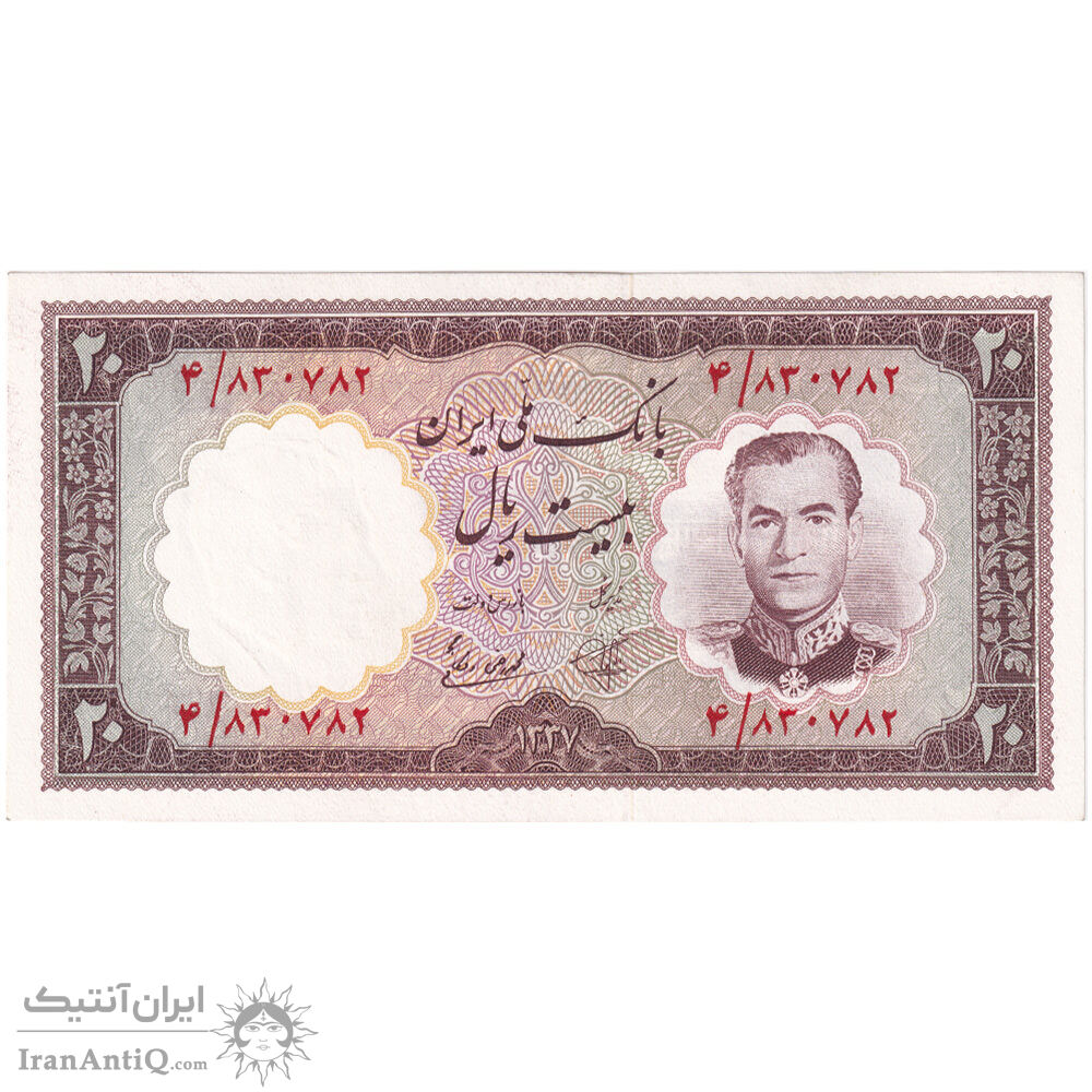 اسکناس 20 ریال 1337 - تک - UNC63 - محمد رضا شاه