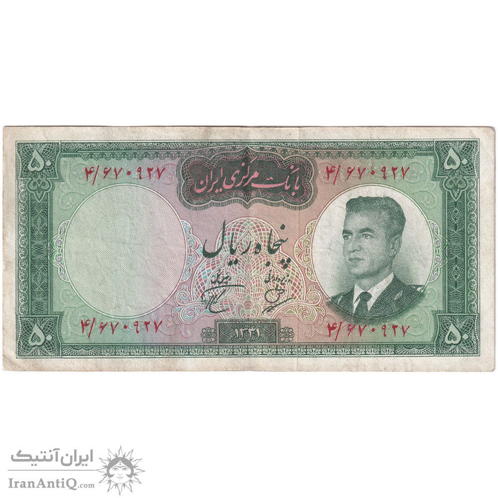 mohammad reza shah 50 rials 1341 iran banknote - small date - EF40
