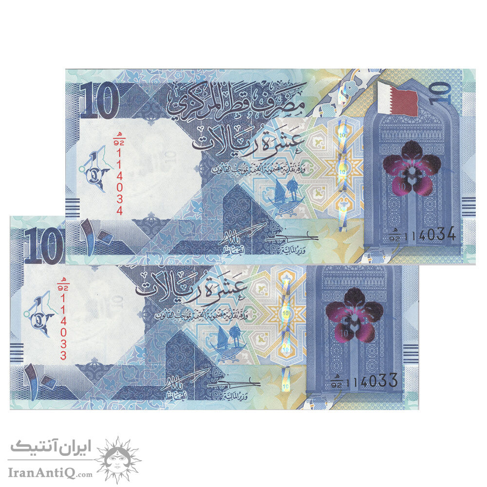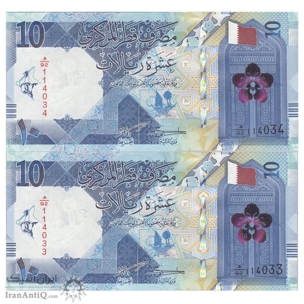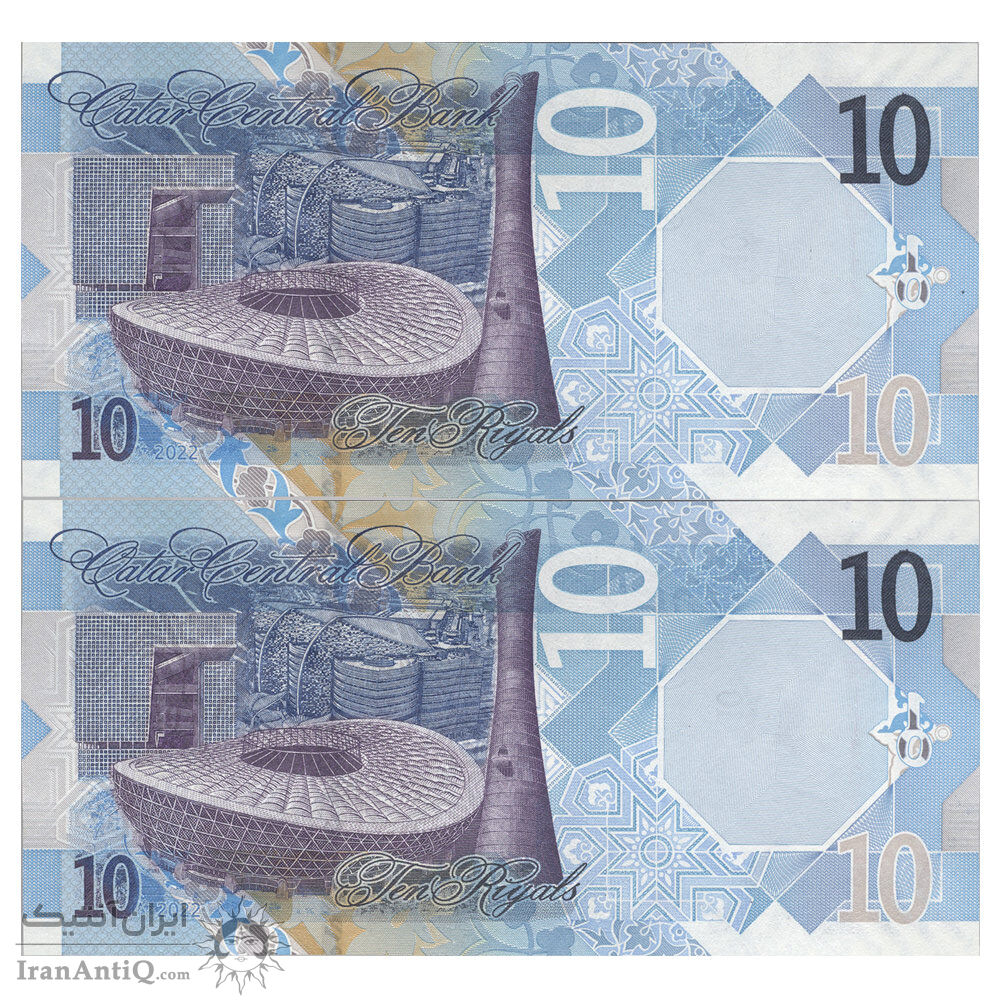 اسکناس 10 ریال 2022 تمیم بن حمد آل ثانی - جفت - UNC63 - قطر