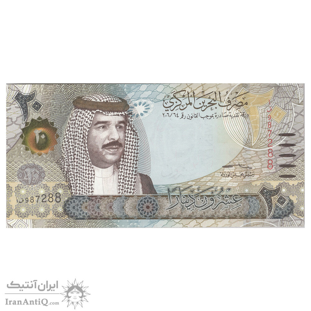 اسکناس 20 دینار 2006 (2022) حمد بن عیسی آل خلیفه - امضای سلمان بن حمد آل خلیفه - علائم ضخیم برای افراد کم بینا - تک - UNC63 - بحرین