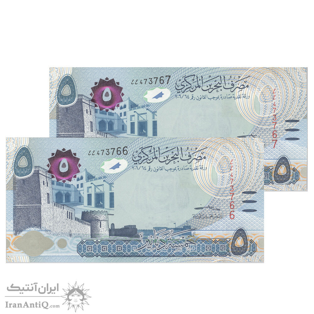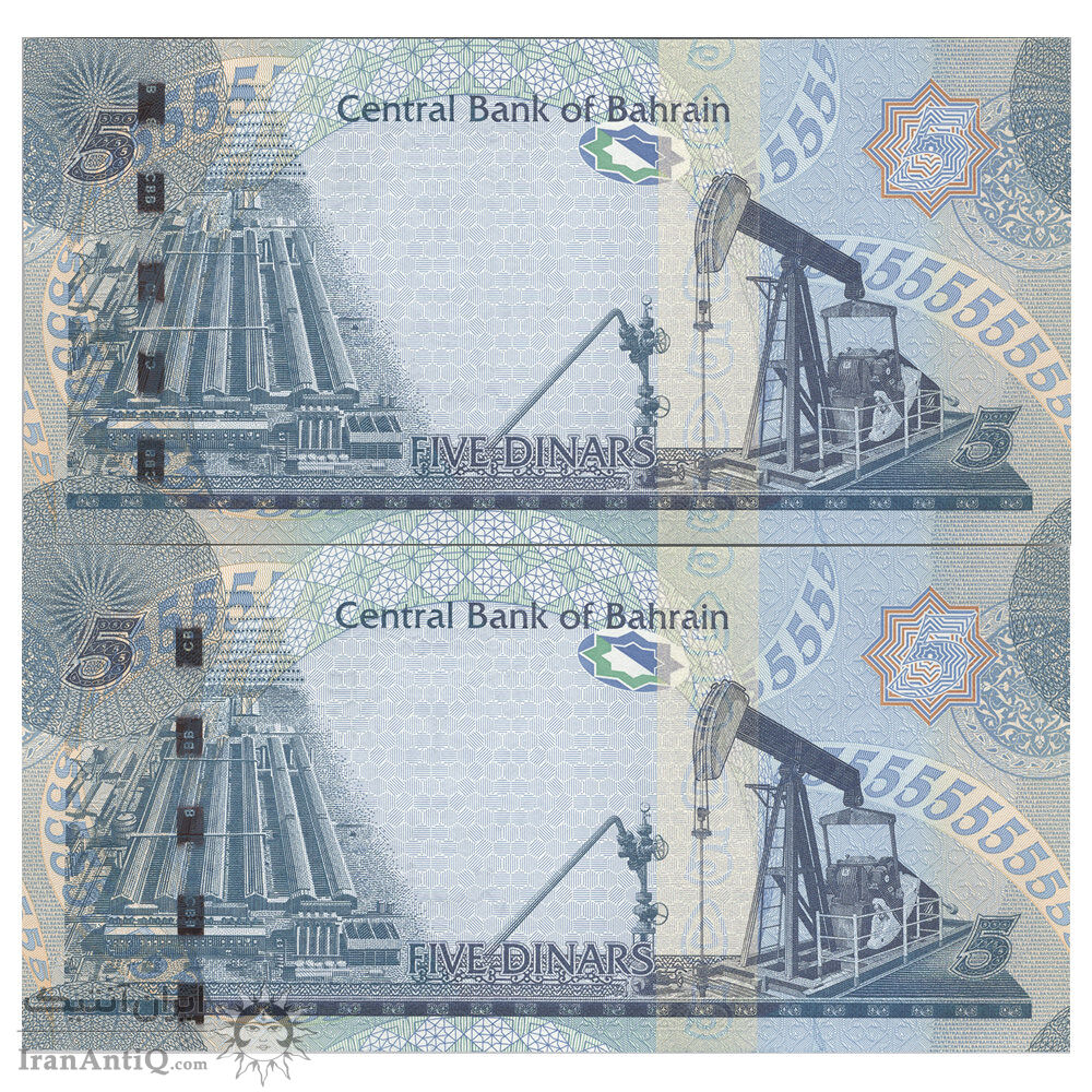 اسکناس 5 دینار 2006 (2022) حمد بن عیسی آل خلیفه - امضای سلمان بن حمد آل خلیفه - علائم ضخیم برای افراد کم بینا - جفت - UNC64 - بحرین
