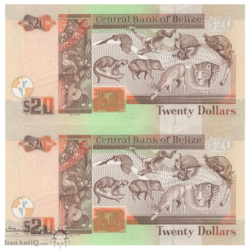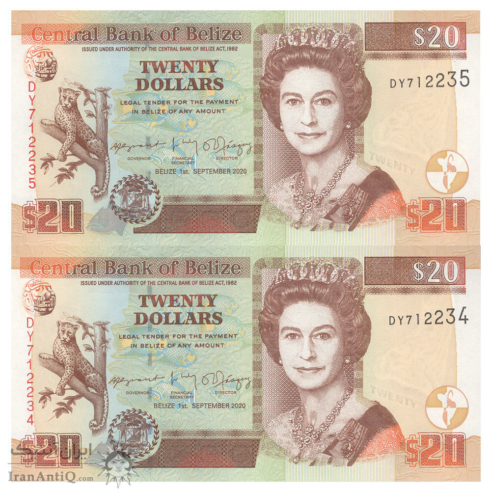 اسکناس 20 دلار 2020 الیزابت دوم - جفت - UNC63 - بلیز