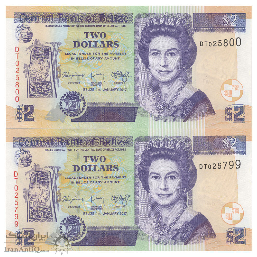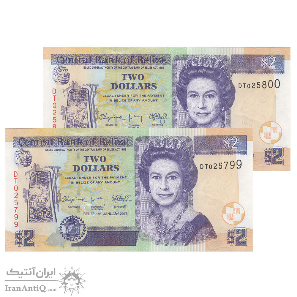 اسکناس 2 دلار 2017 الیزابت دوم - جفت - UNC63 - بلیز