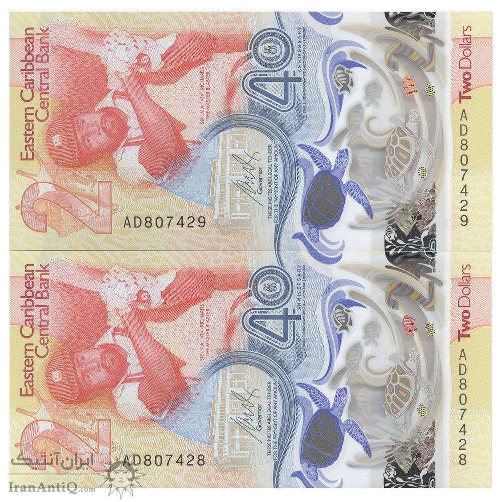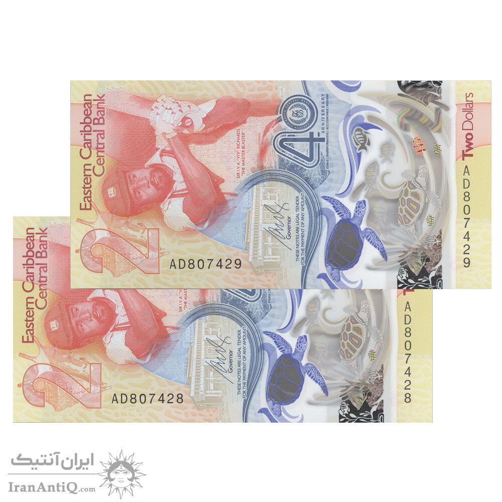 اسکناس 2 دلار 2023 چارلز سوم - جفت - UNC65 - حوزه کارائیب شرقی