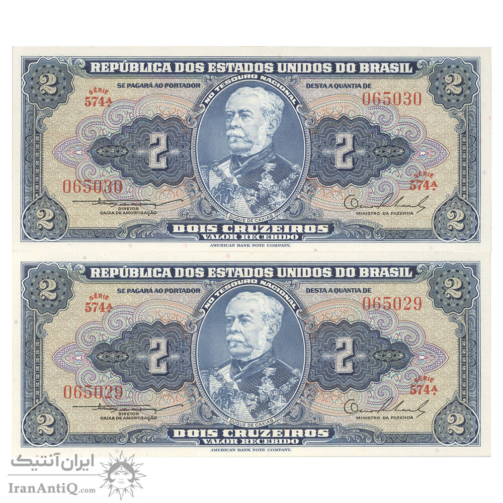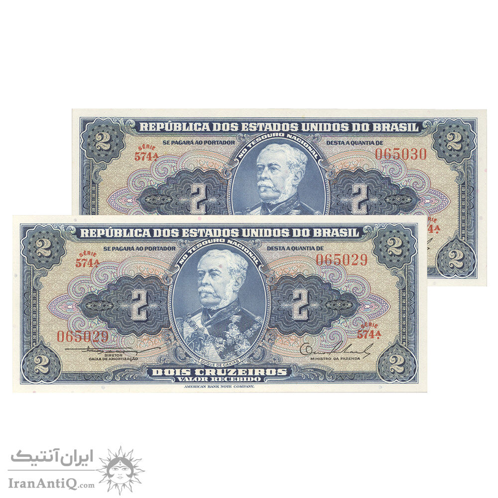 اسکناس 2 کروزریو بدون تاریخ (1954) - امضای CSL, OESA جمهوری اول - جفت - UNC64 - برزیل