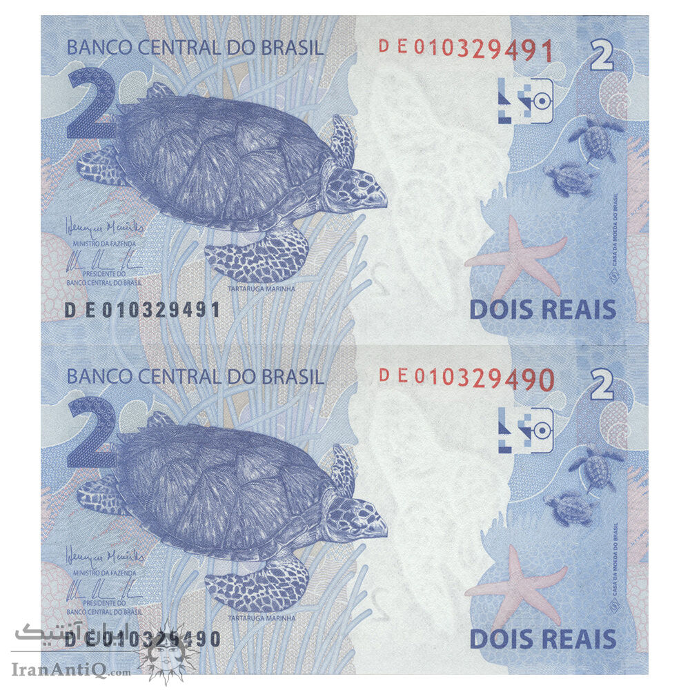 اسکناس 2 رئال بدون تاریخ (2016) سری DE جمهوری فدراتیو - امضای HCM, AAT - جفت - UNC65 - برزیل