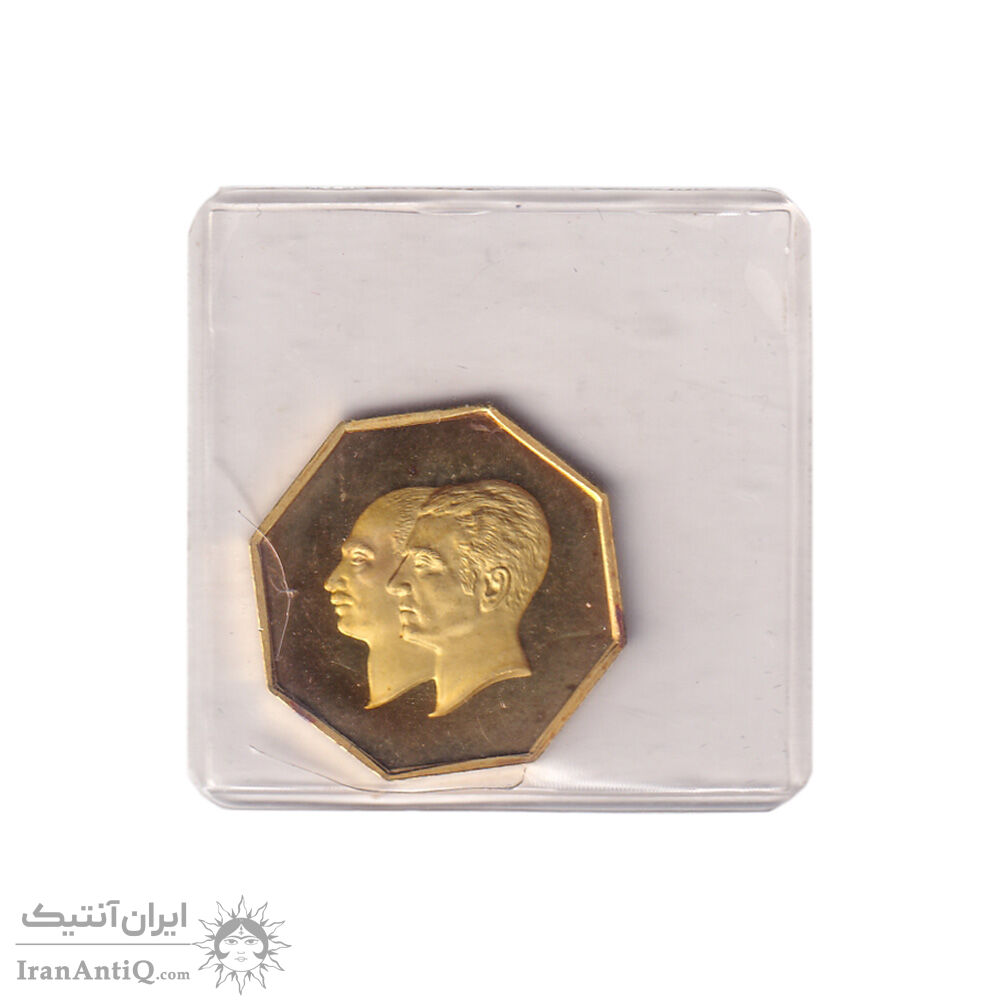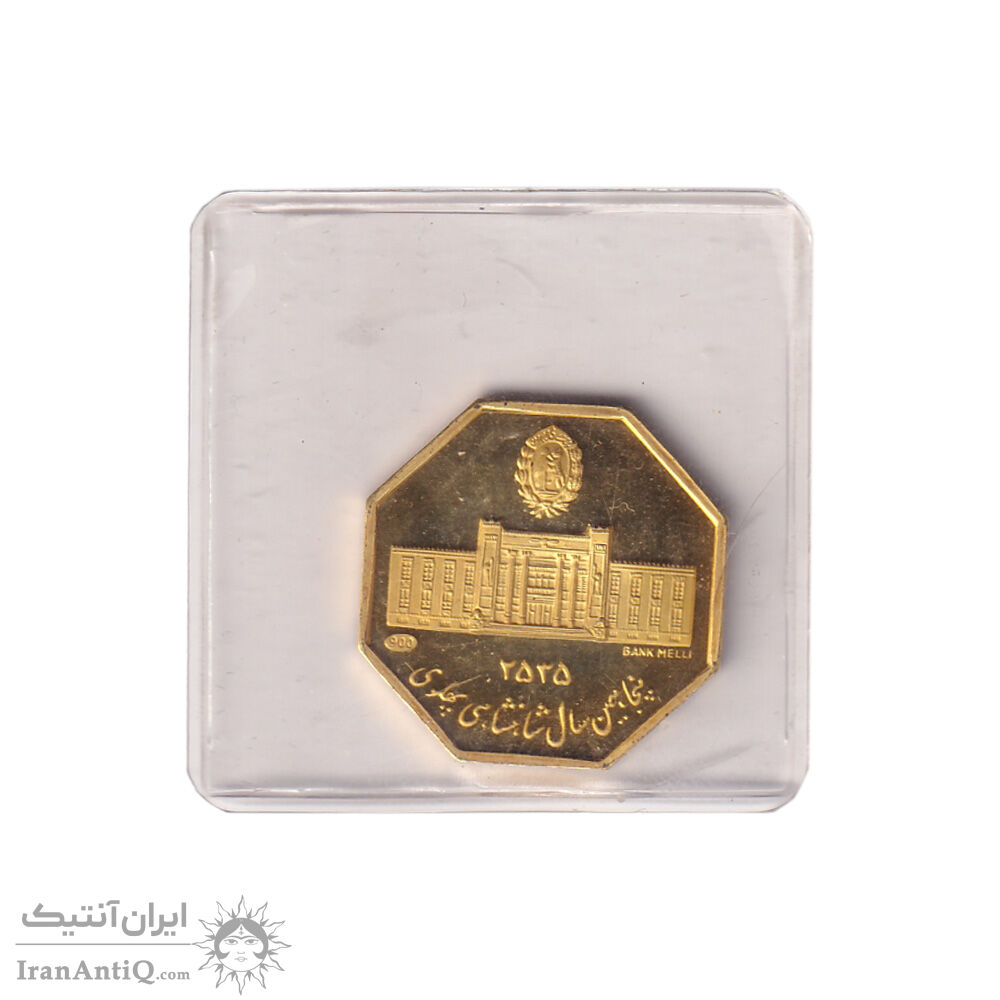 مدال طلا 5 گرمی بانک ملی - هشت ضلعی - با پلمپ - PF65 - محمد رضا شاه
