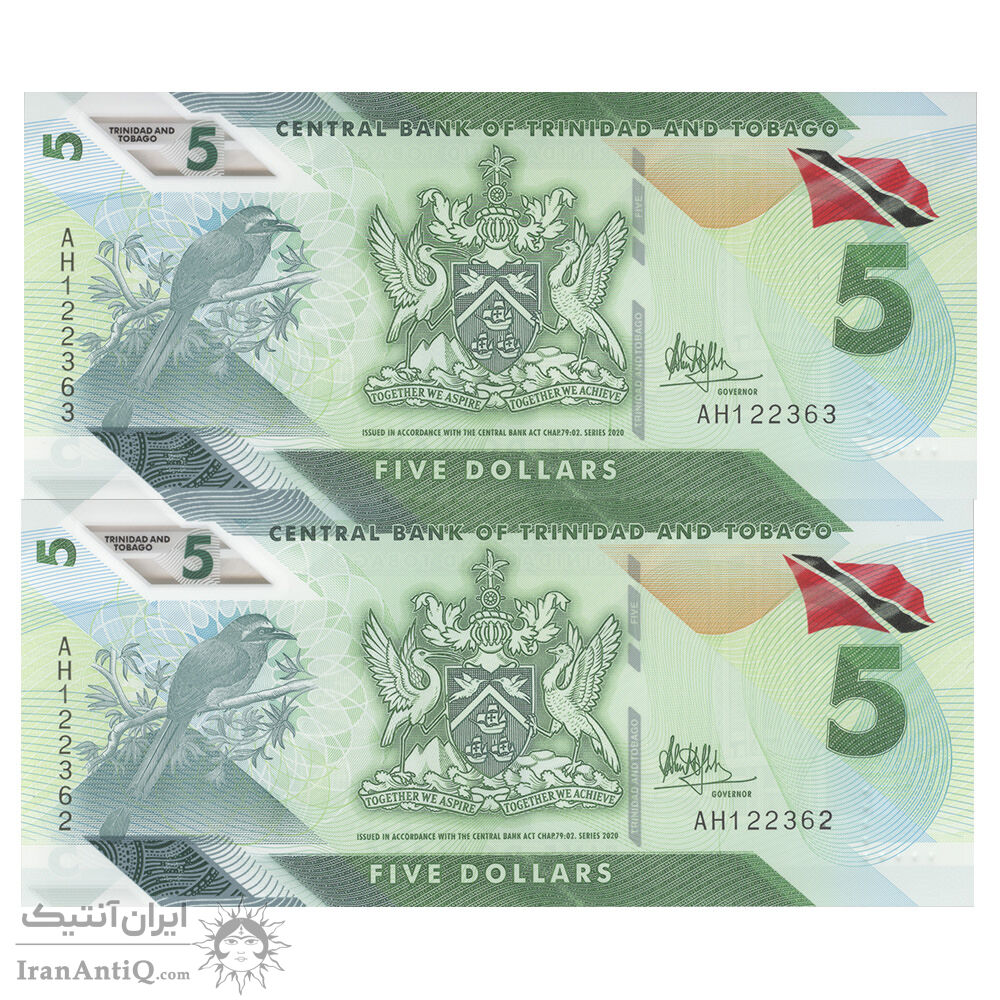 اسکناس 5 دلار 2020 جمهوری - جفت - UNC65 - ترینیداد و توباگو