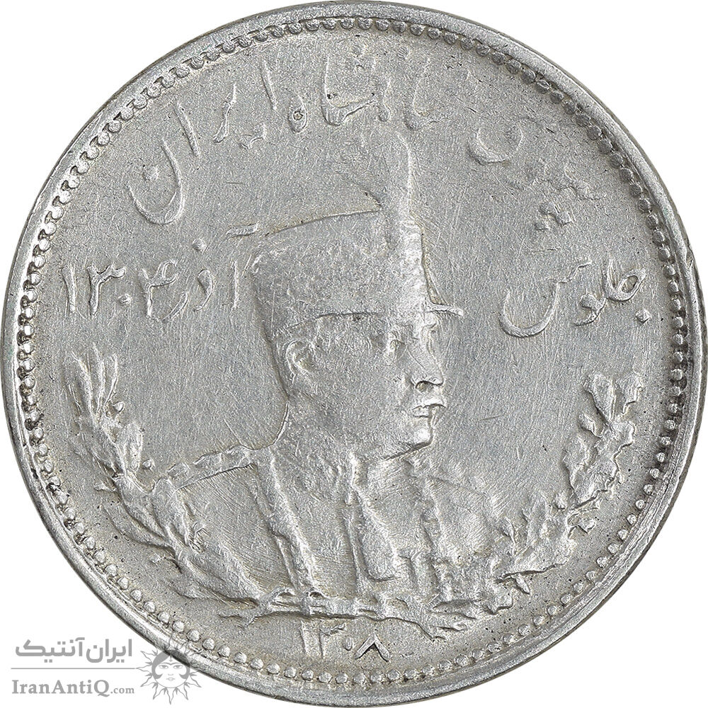 سکه 1000 دینار 1308 تصویری - AU50 - رضا شاه