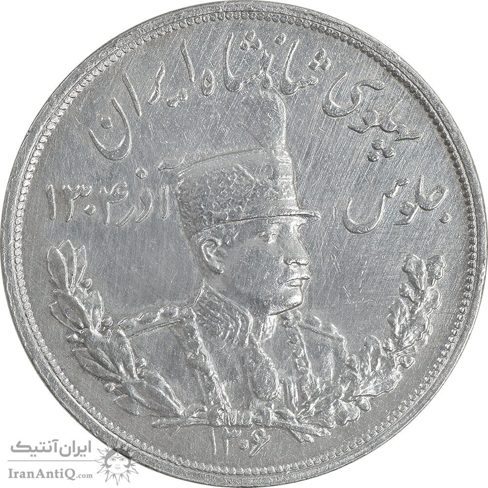 سکه 5000 دینار 1306 تصویری - ضرب لنینگراد - AU - cleaned - رضا شاه