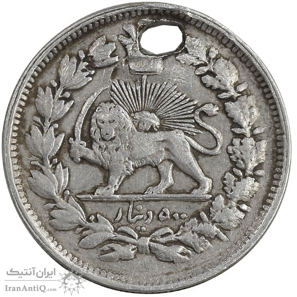 iran 500 dinars 1307 coin - EF - naser aldin shah