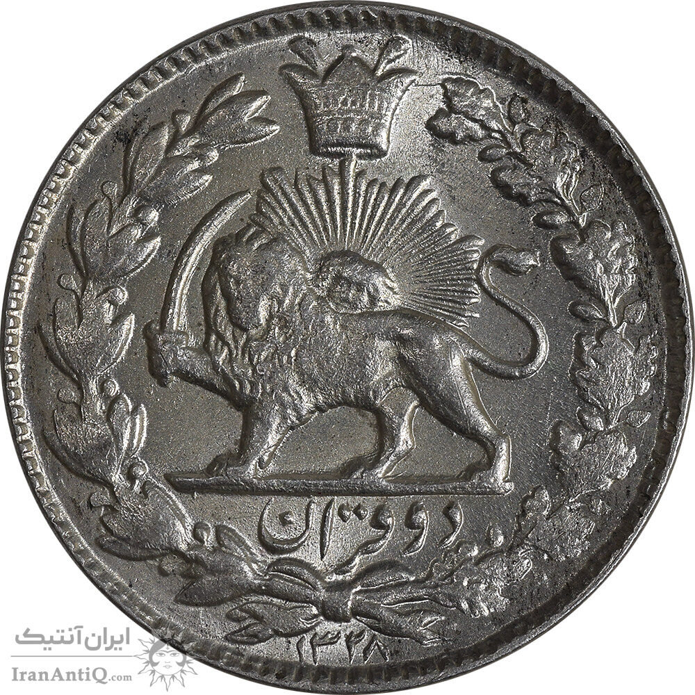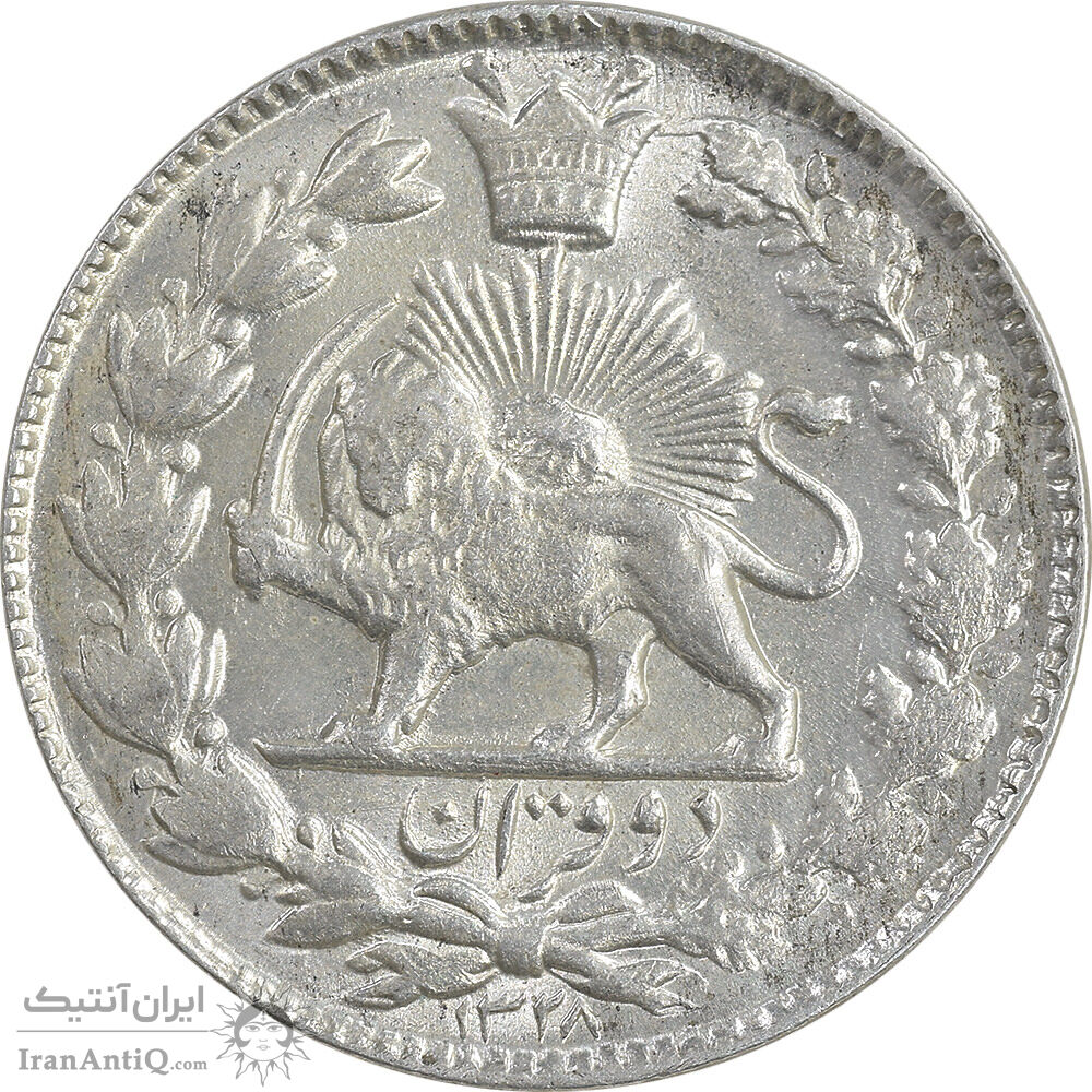 iran 2 krans 1328 coin - MS62 - ahmad shah