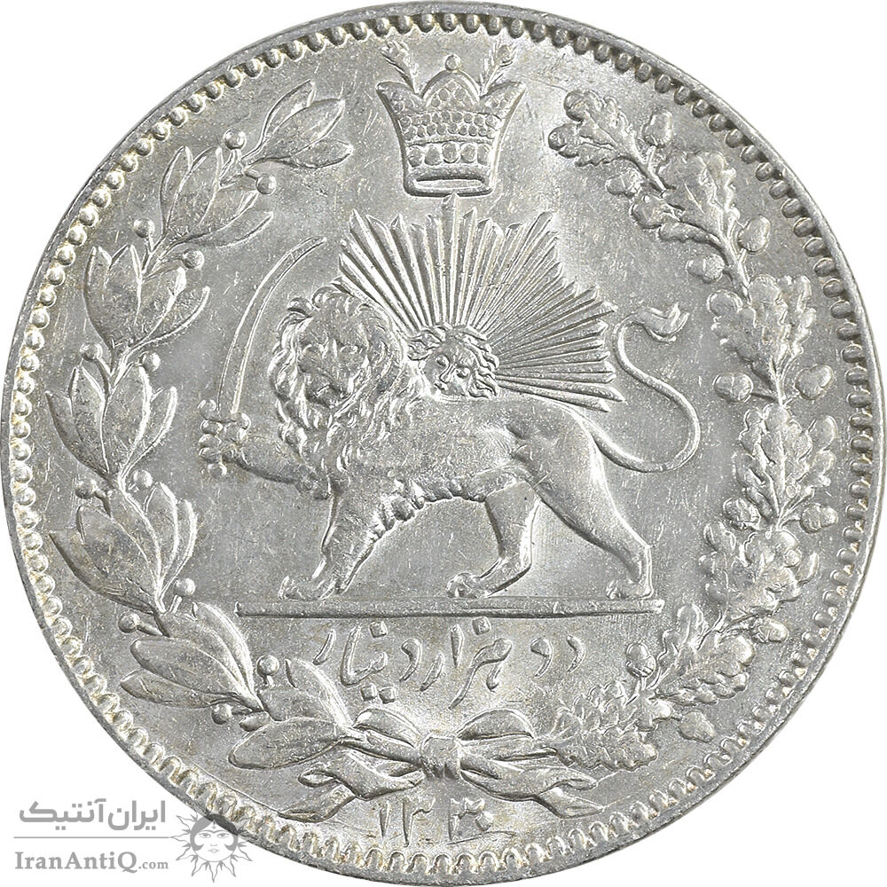 سکه 2000 دینار 1330 خطی - شیر متفاوت - MS65 - احمد شاه