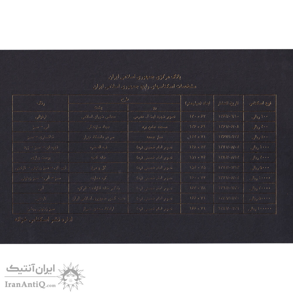 اسکناس ها همگی سوپر بانکی به صورت جفت در دو آلبوم مصور جای داده شده است.