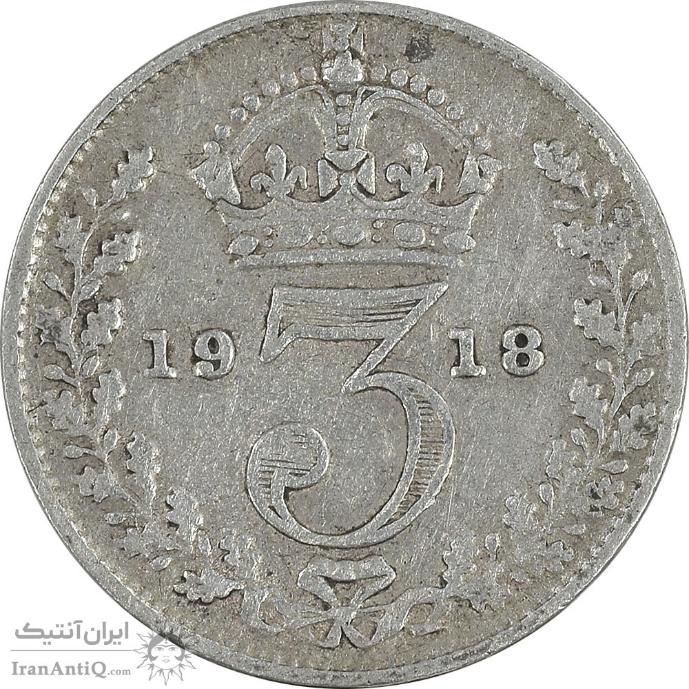 سکه 3 پنس 1918 جرج پنجم - EF40 - انگلستان