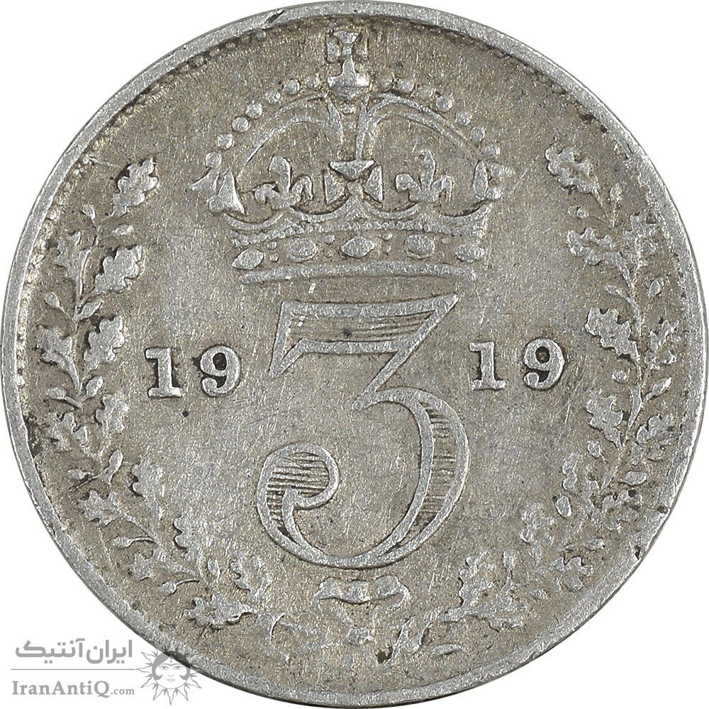 سکه 3 پنس 1919 جرج پنجم - EF45 - انگلستان