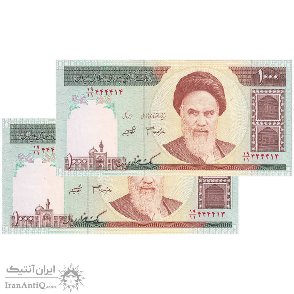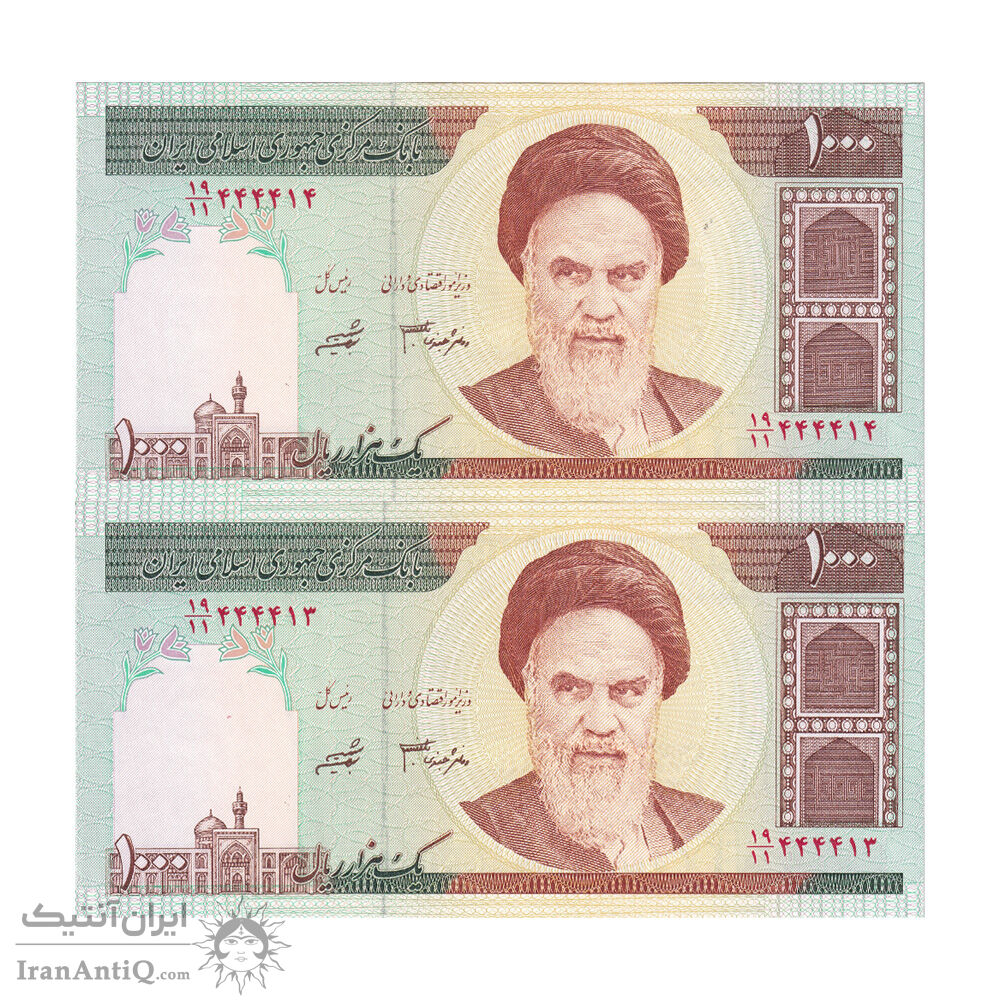 اسکناس 1000 ریال (جعفری - شیبانی) - شماره مزاحم - جفت - UNC62 - جمهوری اسلامی