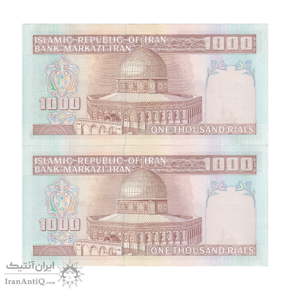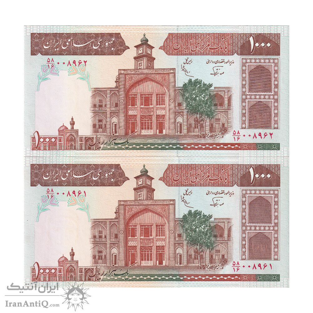 اسکناس 1000 ریال (نوربخش - عادلی) امضاء کوچک - شماره بزرگ - جفت - UNC63 - جمهوری اسلامی