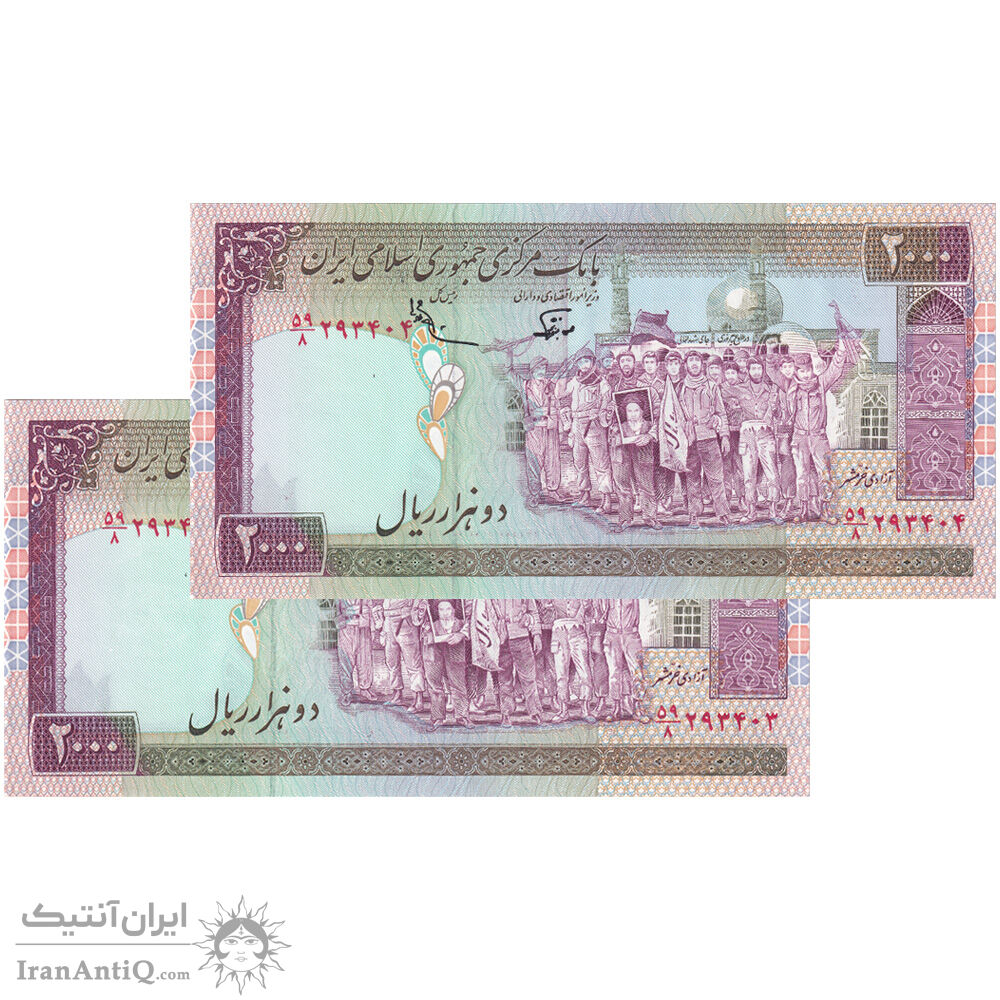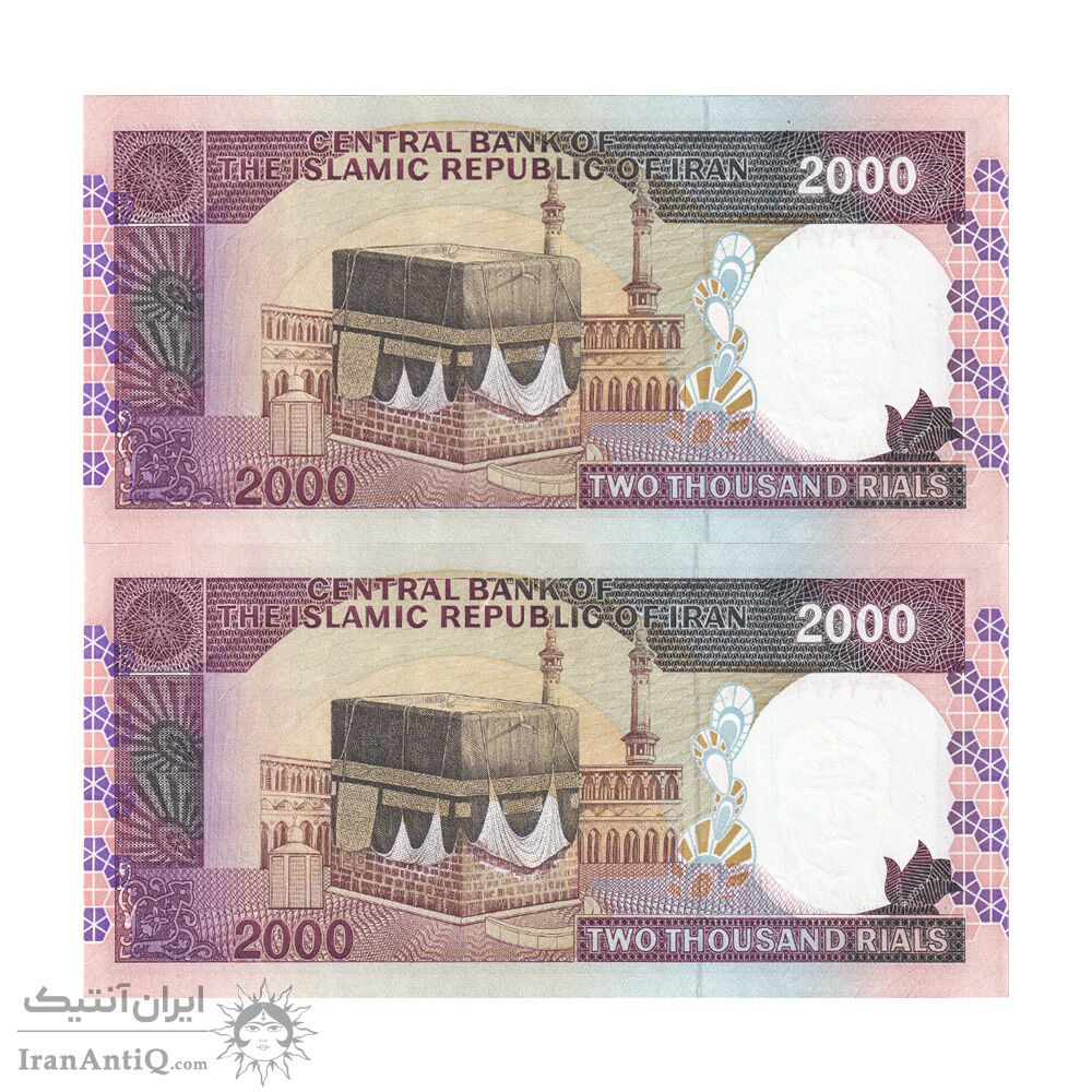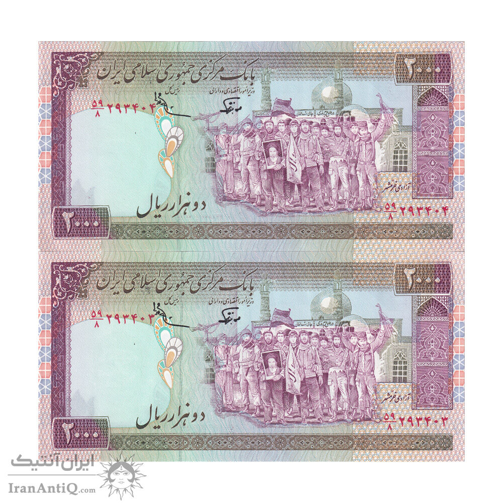 اسکناس 2000 ریال (نوربخش - عادلی) امضاء بزرگ - شماره بزرگ - جفت - UNC62 - جمهوری اسلامی