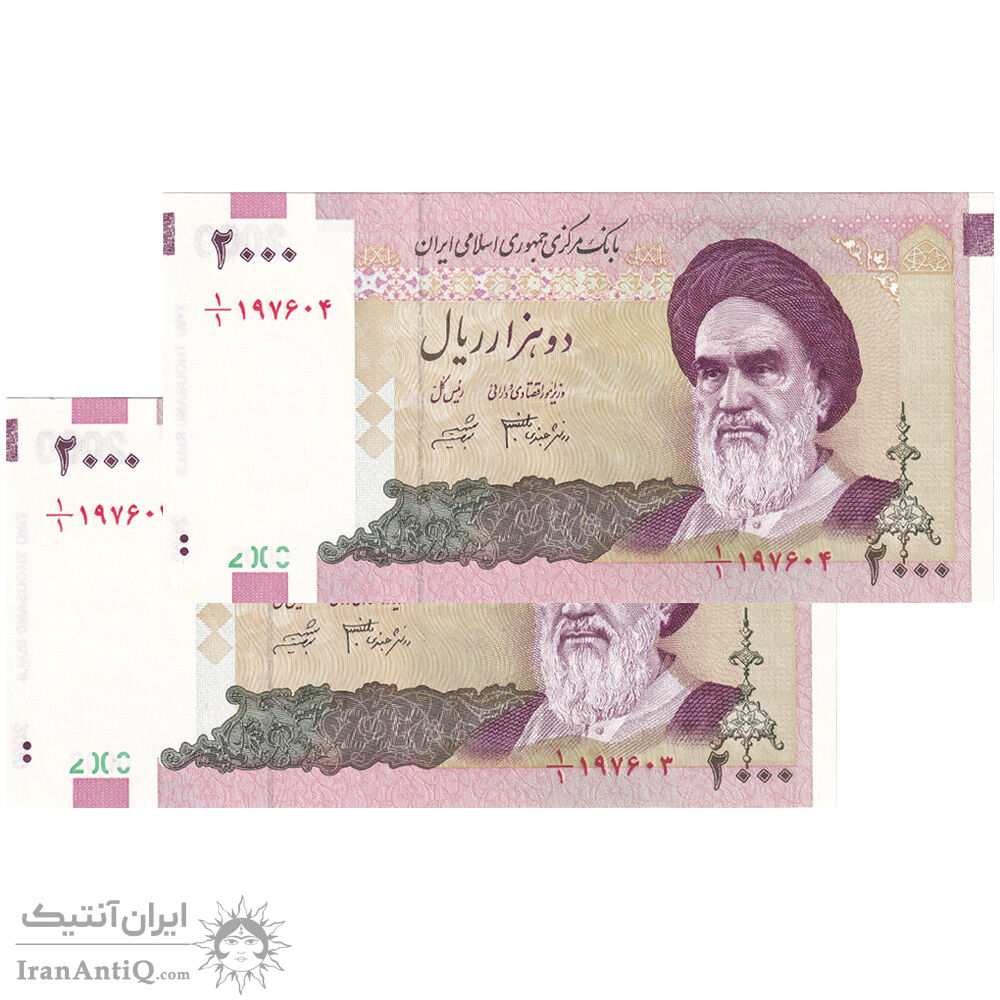 اسکناس 2000 ریال (جعفری - شیبانی) - یک یکم - جفت - UNC63 - جمهوری اسلامی