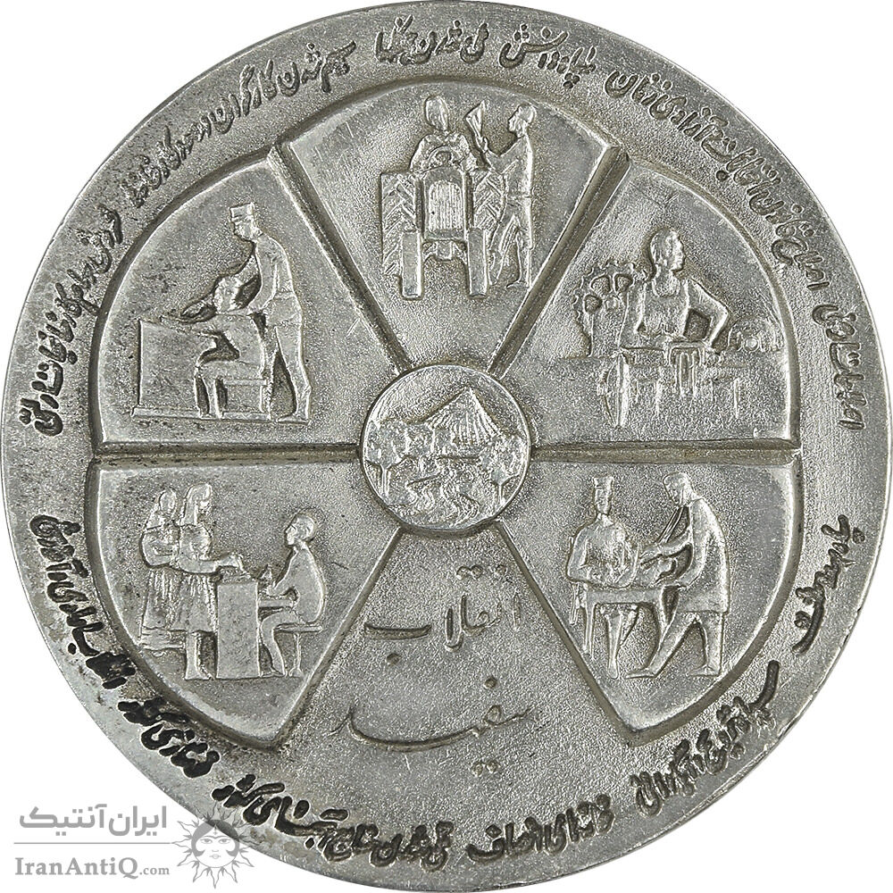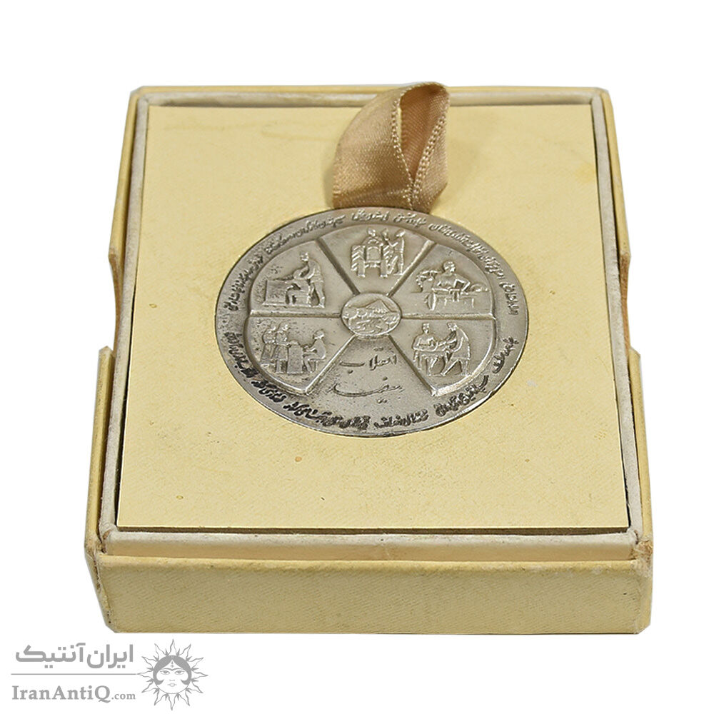 مدال نقره انقلاب سفید 1346 - با جعبه فابریک - AU - محمد رضا شاه