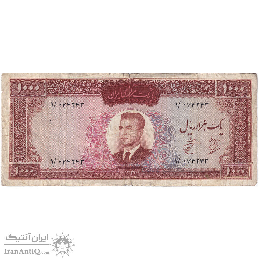 اسکناس 1000 ریال 1341 - تک - VF25 - محمد رضا شاه