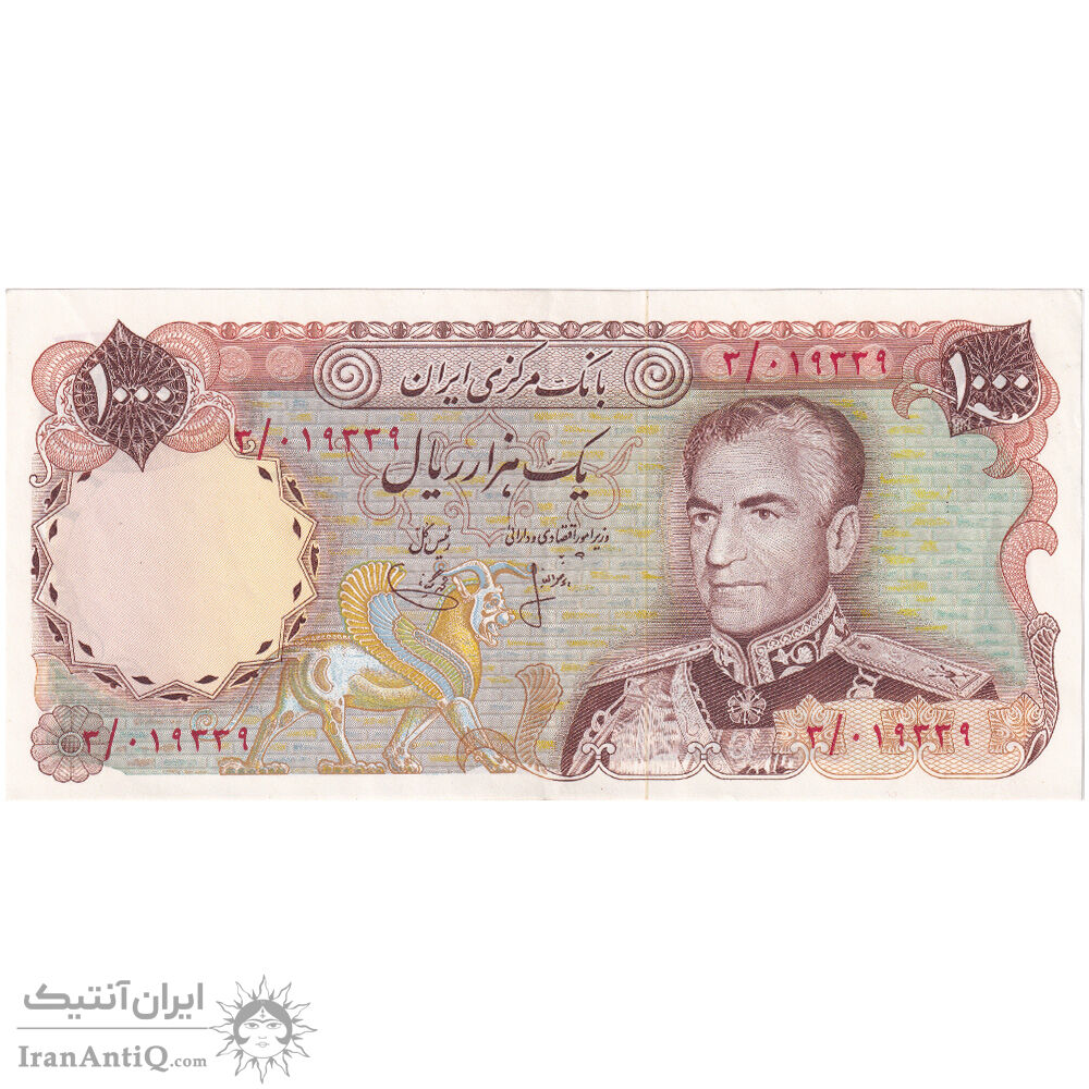 mohammad reza shah 1000 rials (ansari - yegane) iran banknote - AU55