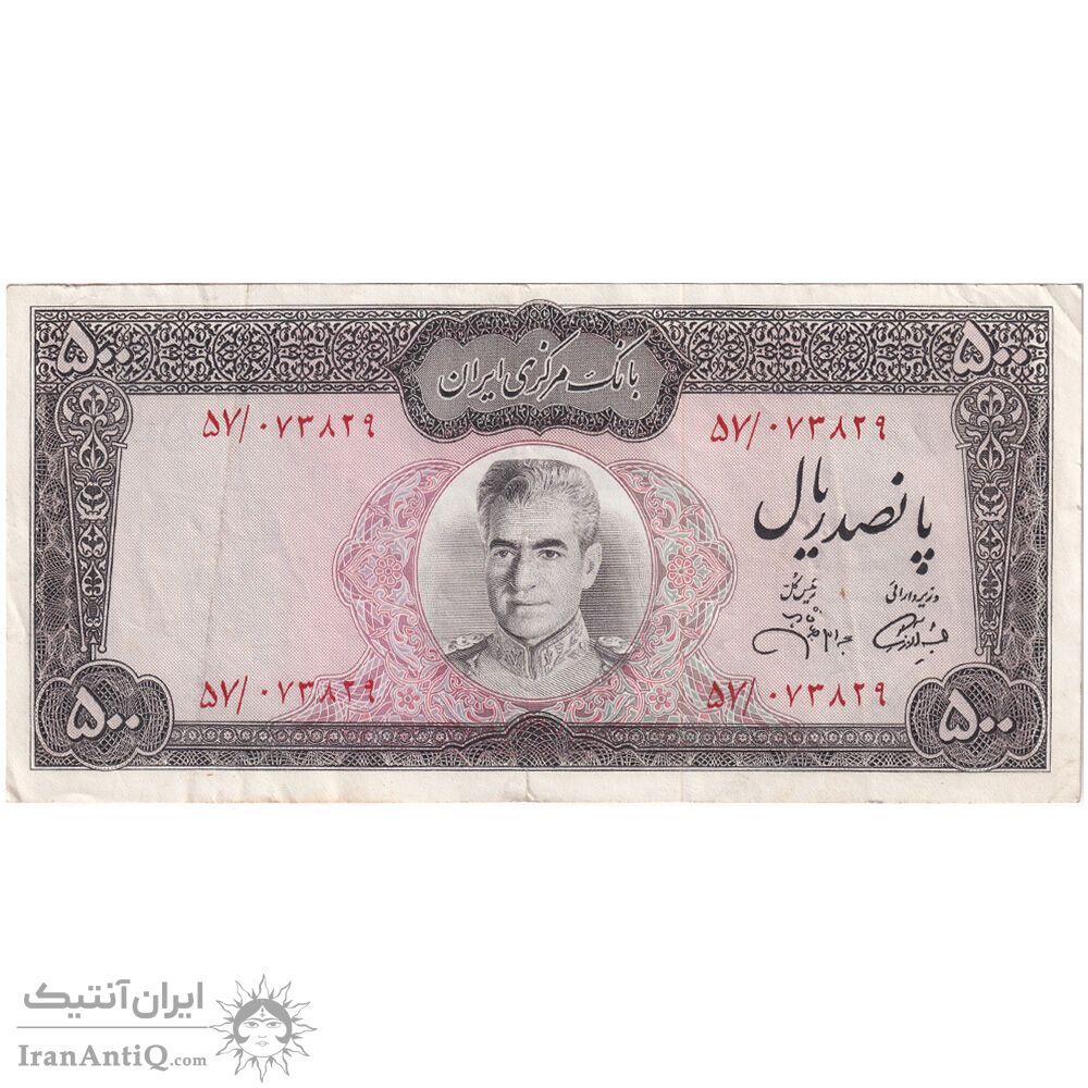 mohammad reza shah 500 rials (amuzegar - jahanshahi) iran banknote - EF45