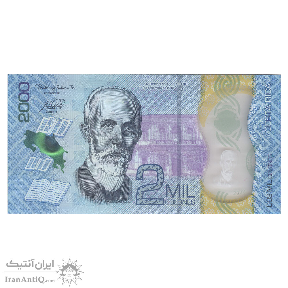 اسکناس 2000 کولون 2018 جمهوری دوم - تک - UNC65 - کاستاریکا