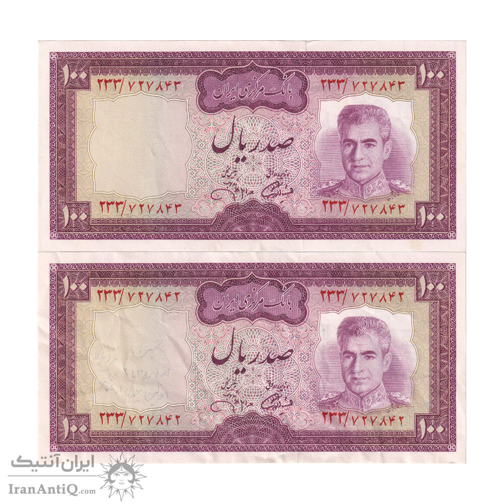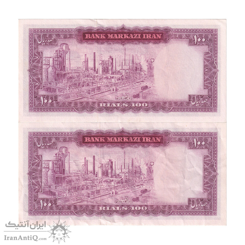 اسکناس 100 ریال (آموزگار - جهانشاهی) - جفت - EF45 - محمد رضا شاه
