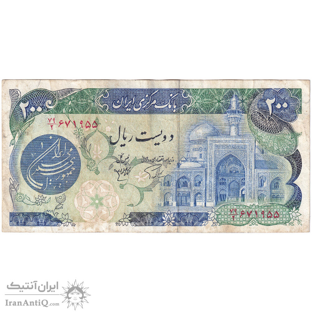 اسکناس 200 ریال (اردلان - مولوی) بدون فیلیگران - تک - EF45 - جمهوری اسلامی