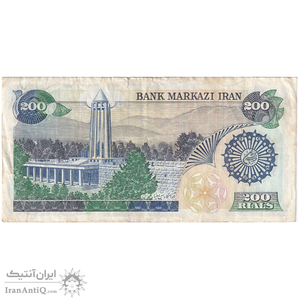 اسکناس 200 ریال (اردلان - مولوی) بدون فیلیگران - تک - EF40 - جمهوری اسلامی