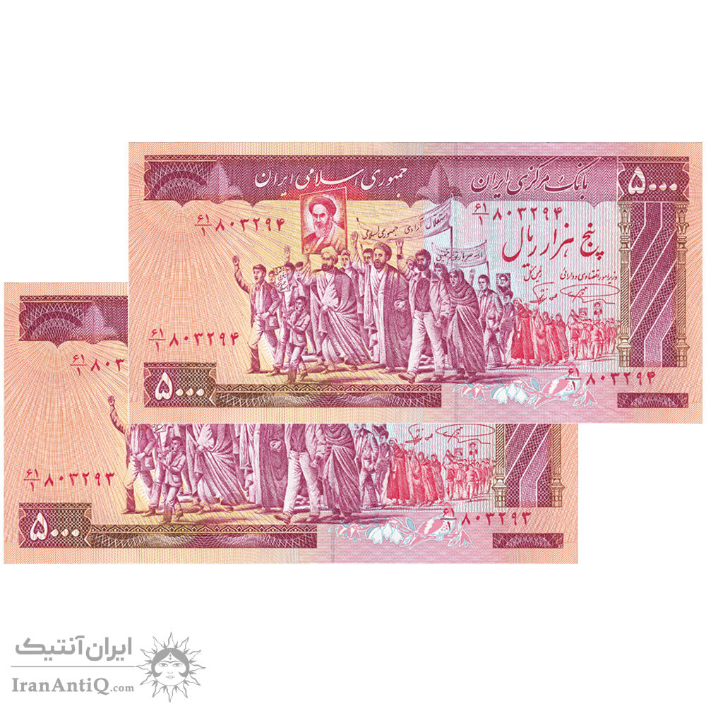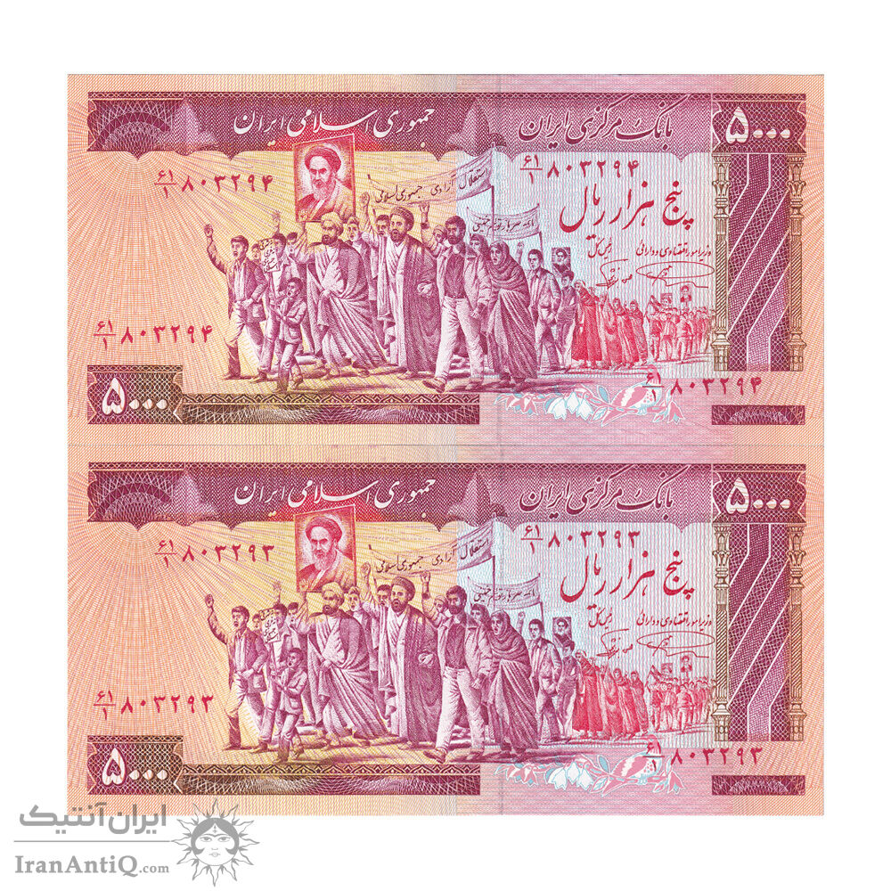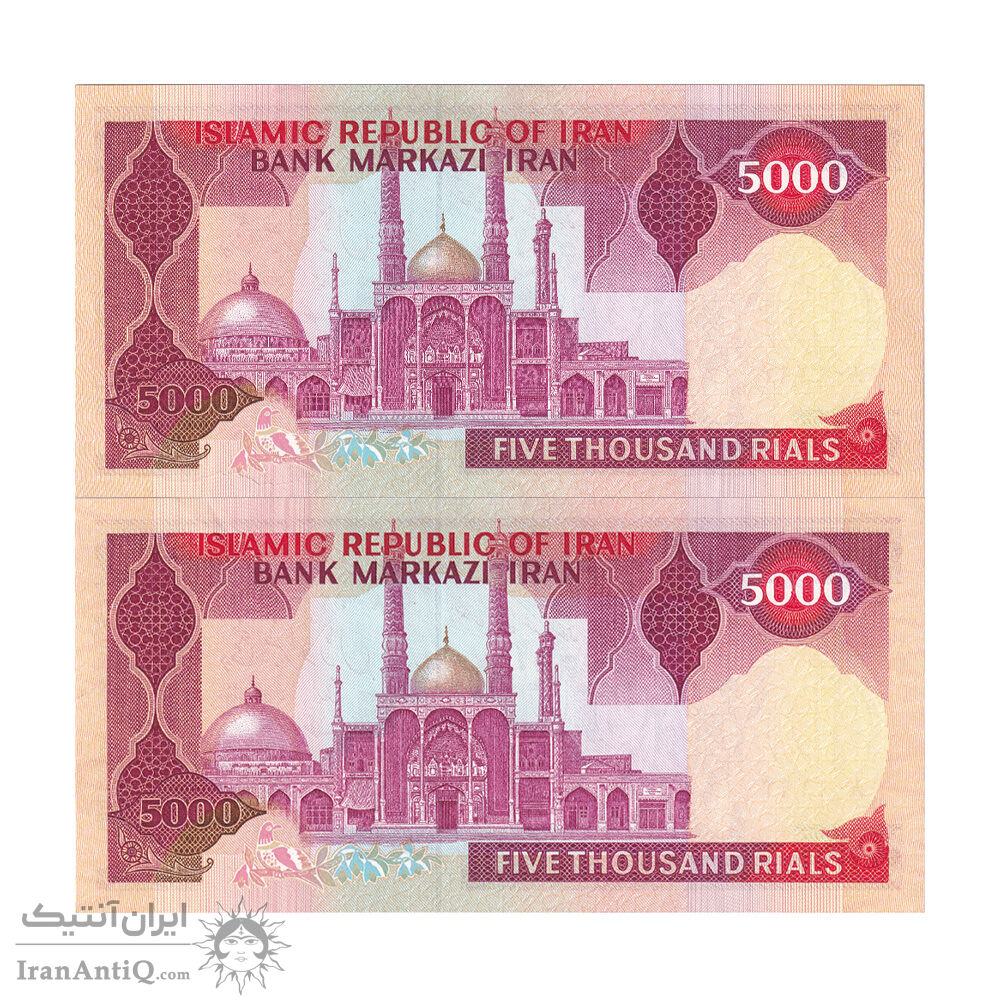 اسکناس 5000 ریال (نمازی - نوربخش) امضاء بزرگ - جفت - UNC62 - جمهوری اسلامی