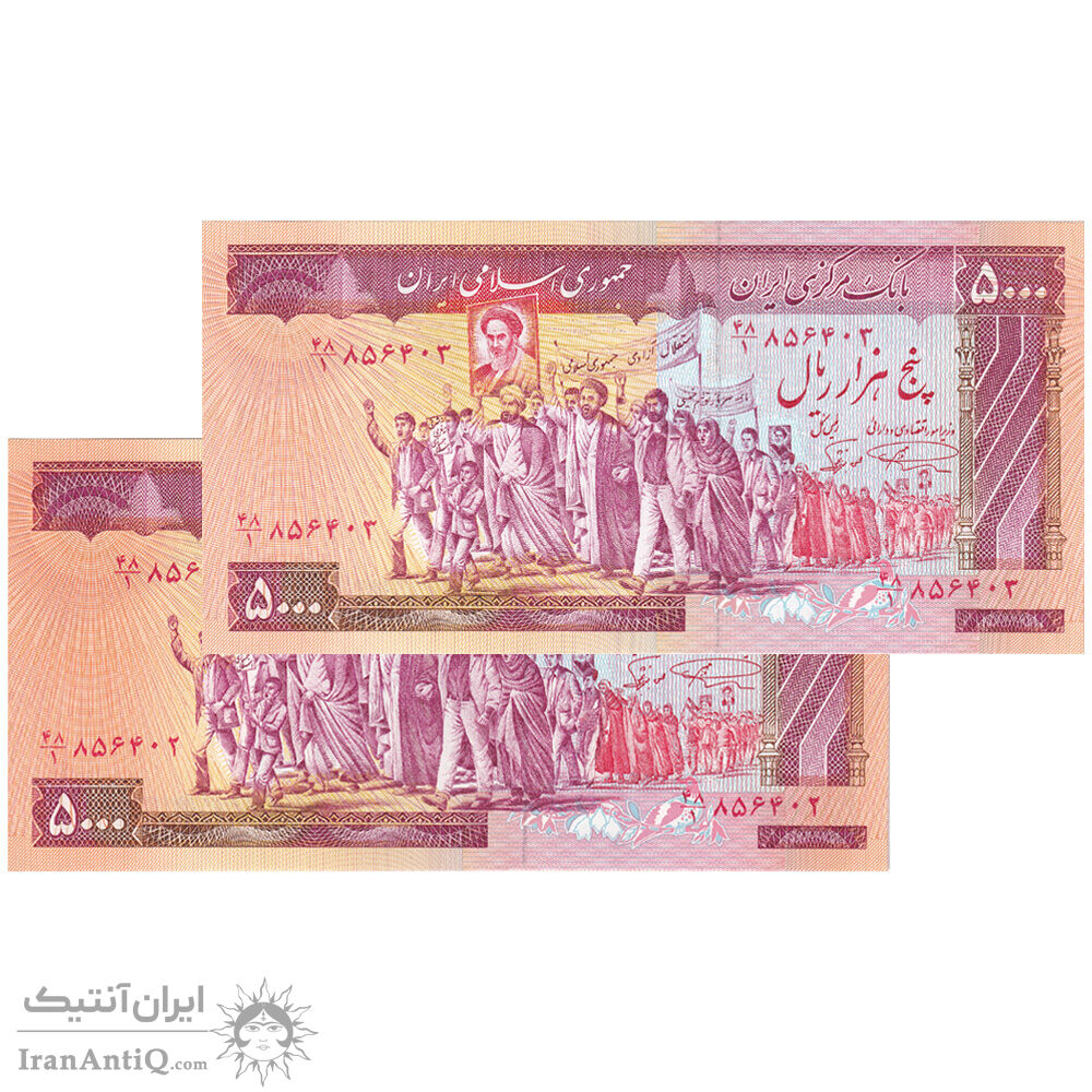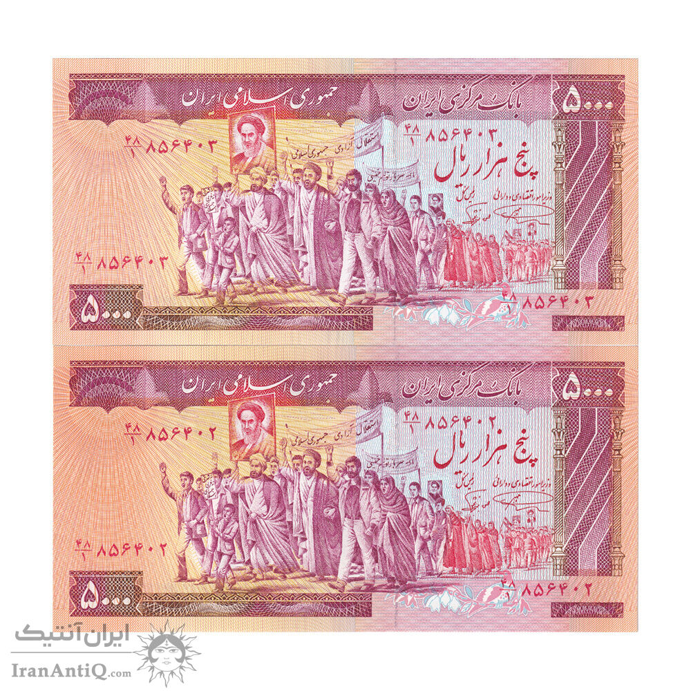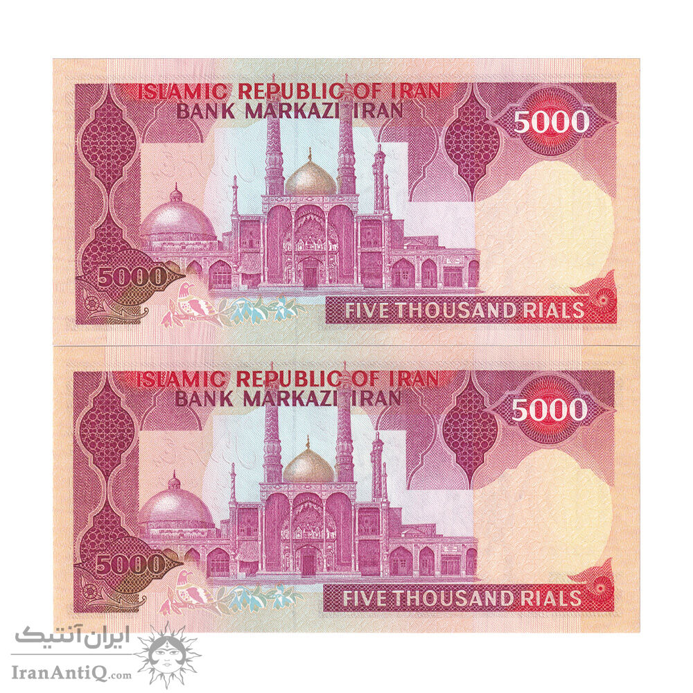 اسکناس 5000 ریال (نمازی - نوربخش) امضاء بزرگ - جفت - UNC64 - جمهوری اسلامی