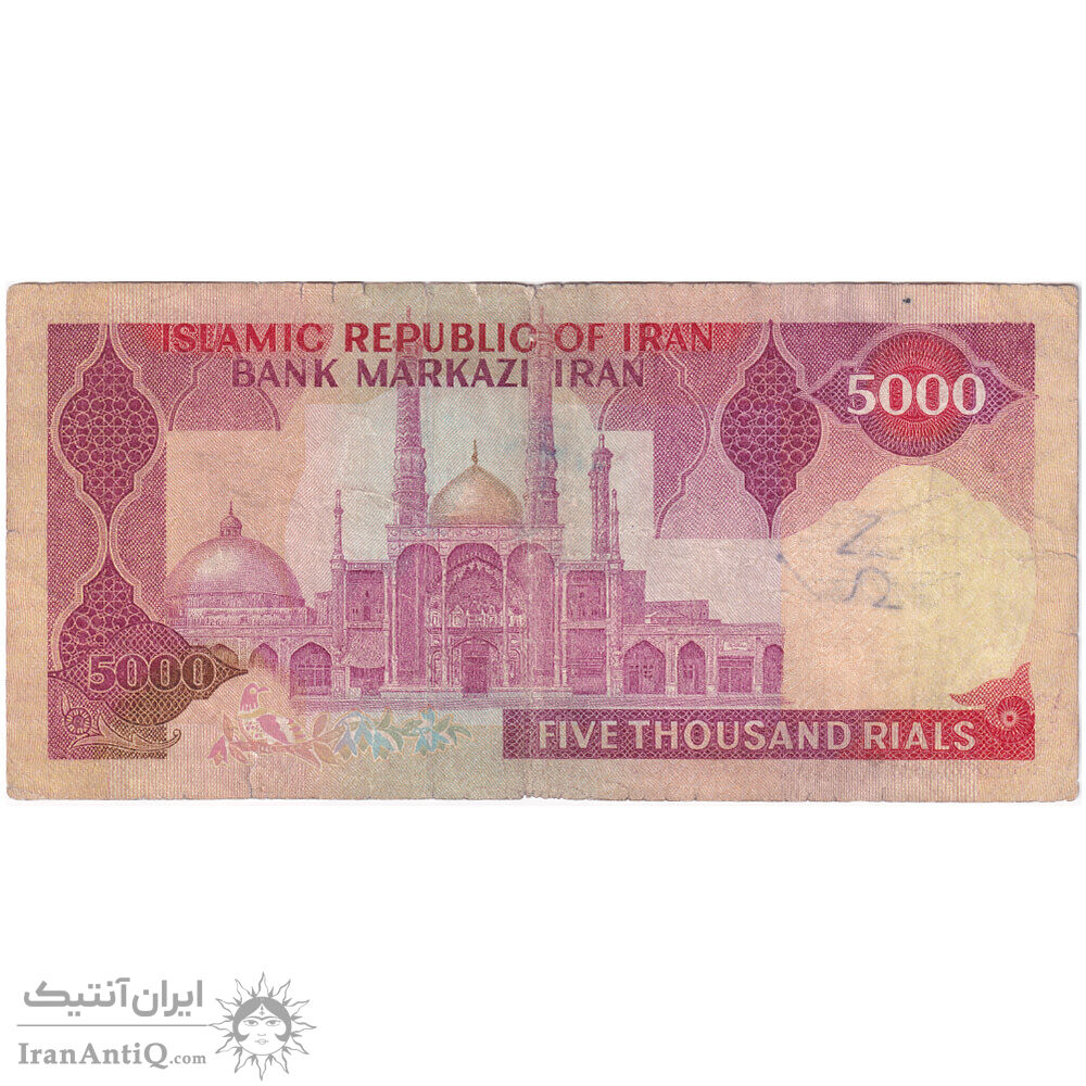 islamic republic 5000 rials (bani sadr - nobari) iran banknote - F15