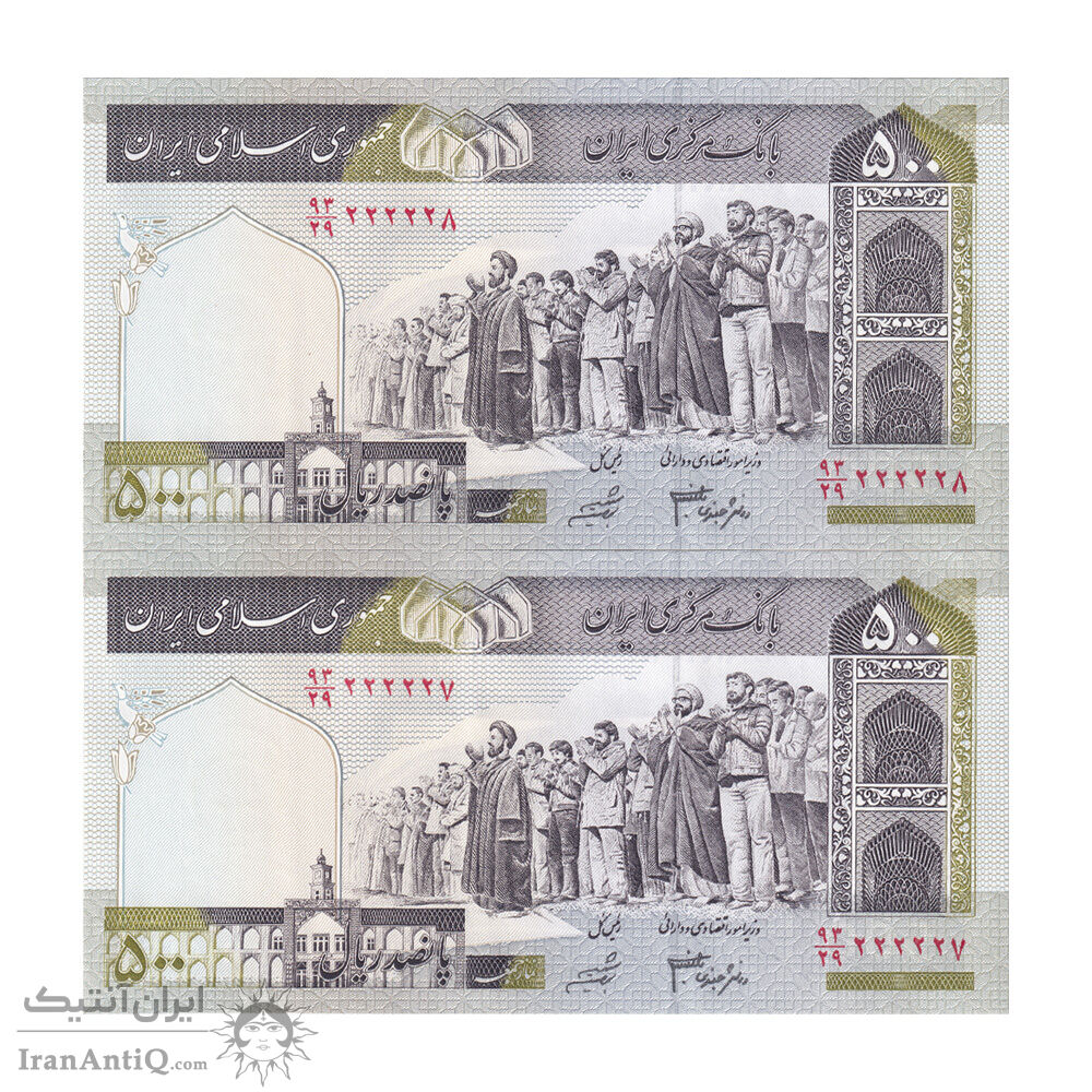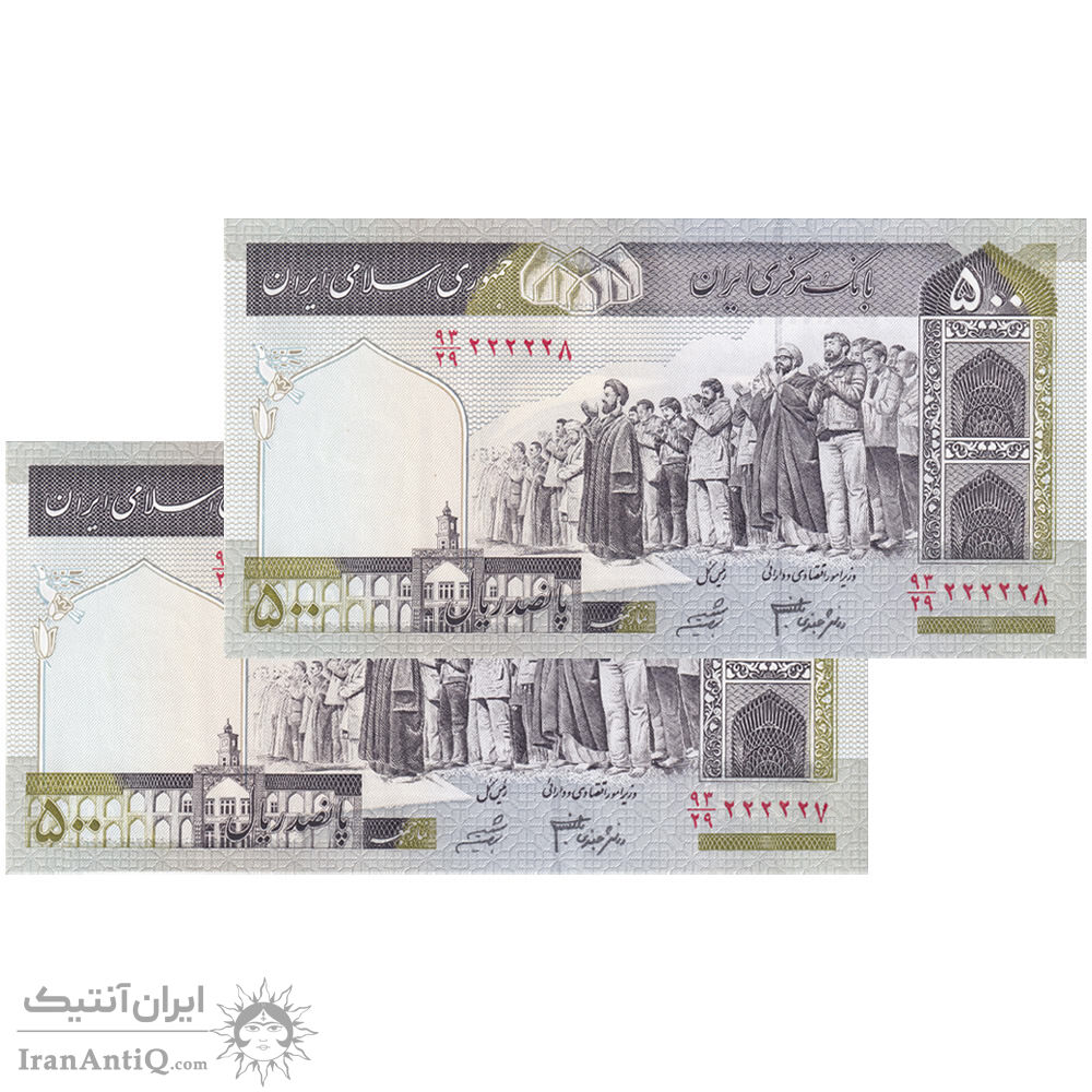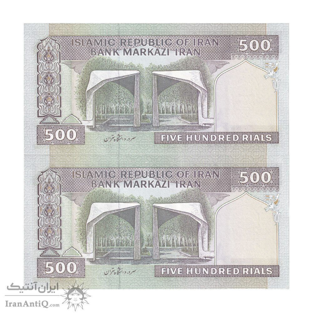 اسکناس 500 ریال (جعفری - شیبانی) - شماره کوچک - شماره نیمه رند - جفت - UNC63 - جمهوری اسلامی