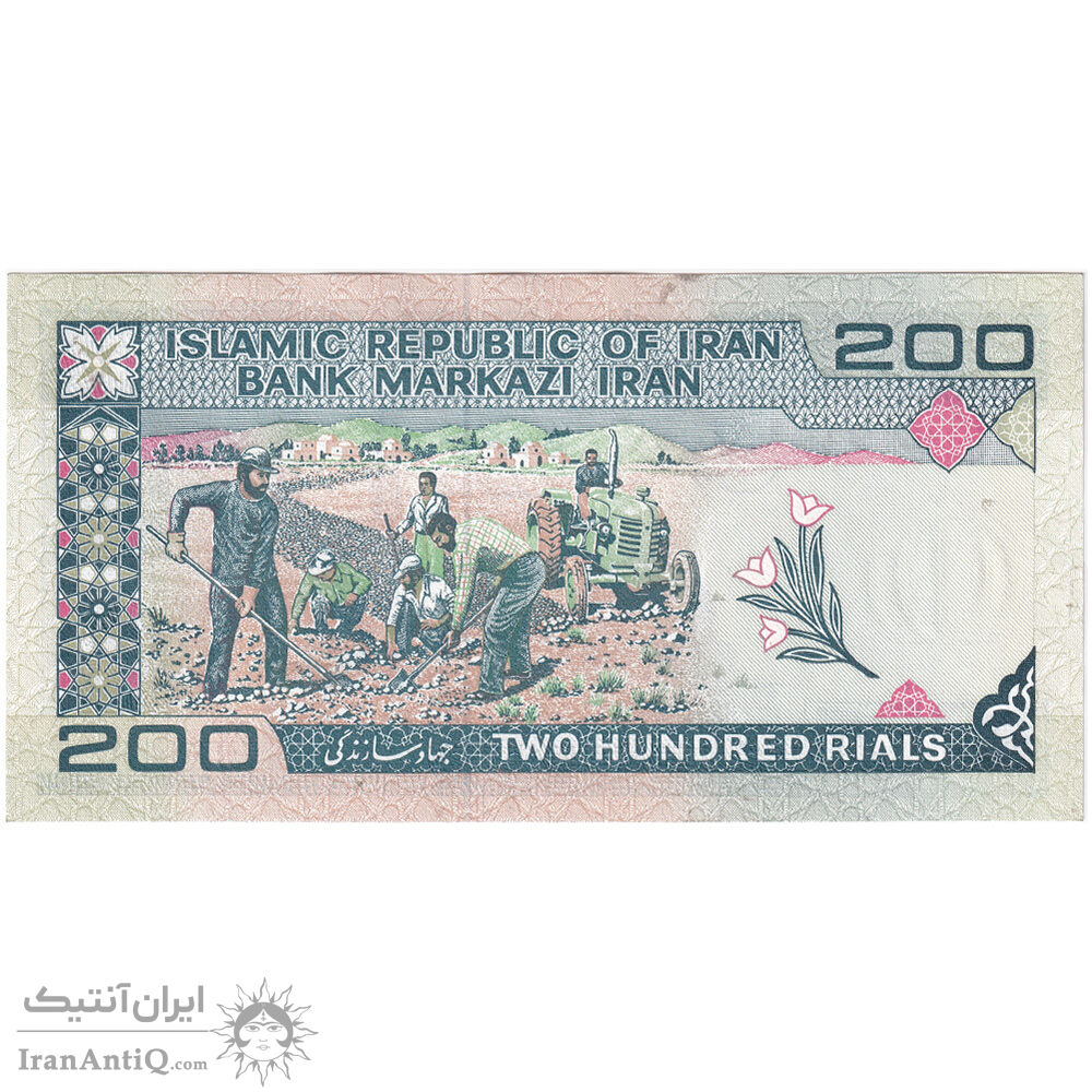 Islamic Republic 200 rials (iravani - ghassemi) iran banknote - UNC63
