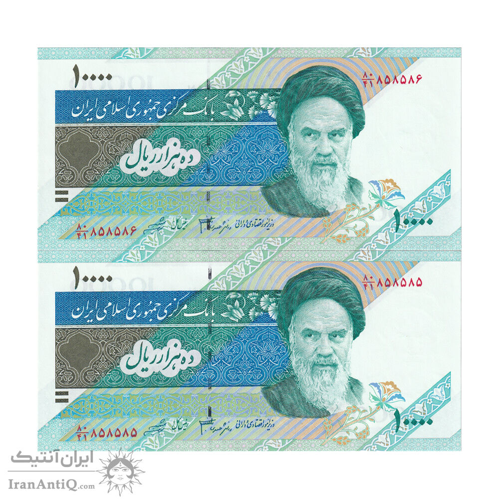 اسکناس 10000 ریال (جعفری - شیبانی) امام - شماره سه قلو - جفت - UNC64 - جمهوری اسلامی