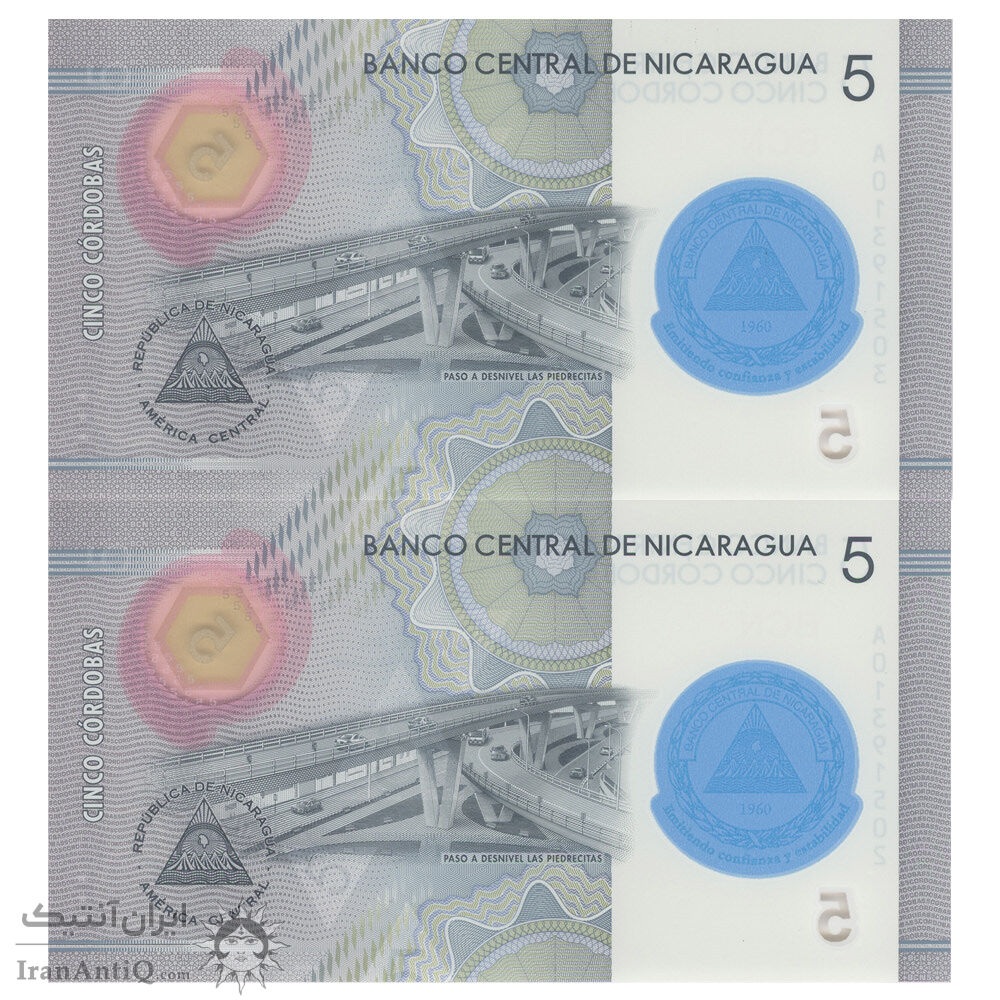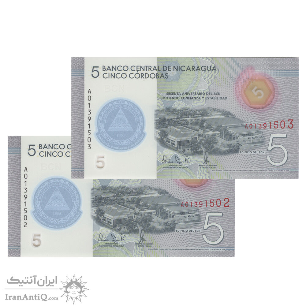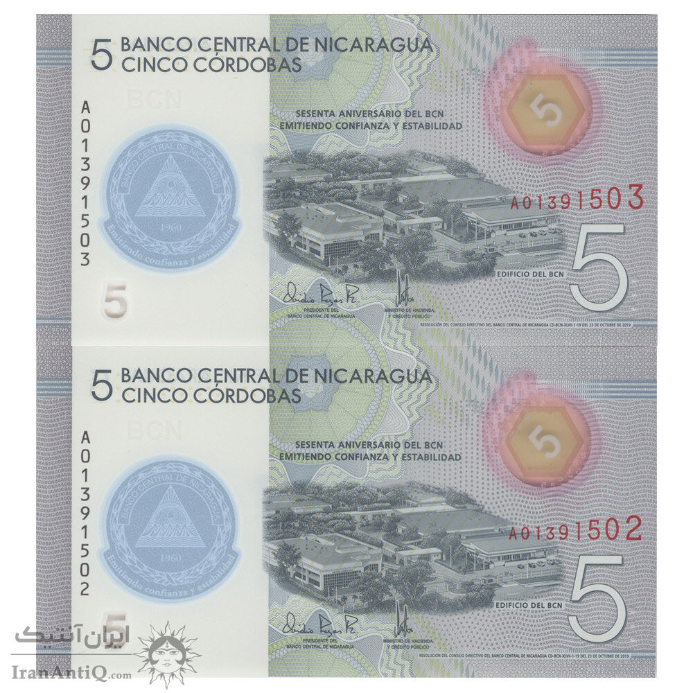 اسکناس 5 کوردوبا 2019 جمهوری - شصتمین سالگرد تأسیس بانک مرکزی - جفت - UNC66 - نیکاراگوئه