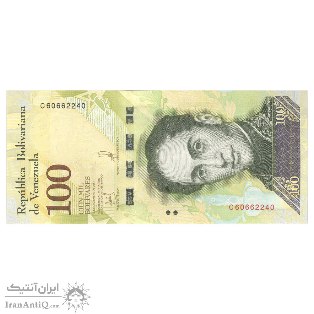 اسکناس 100 بولیوار 2017 جمهوری بولیواری - تک - UNC63 - ونزوئلا