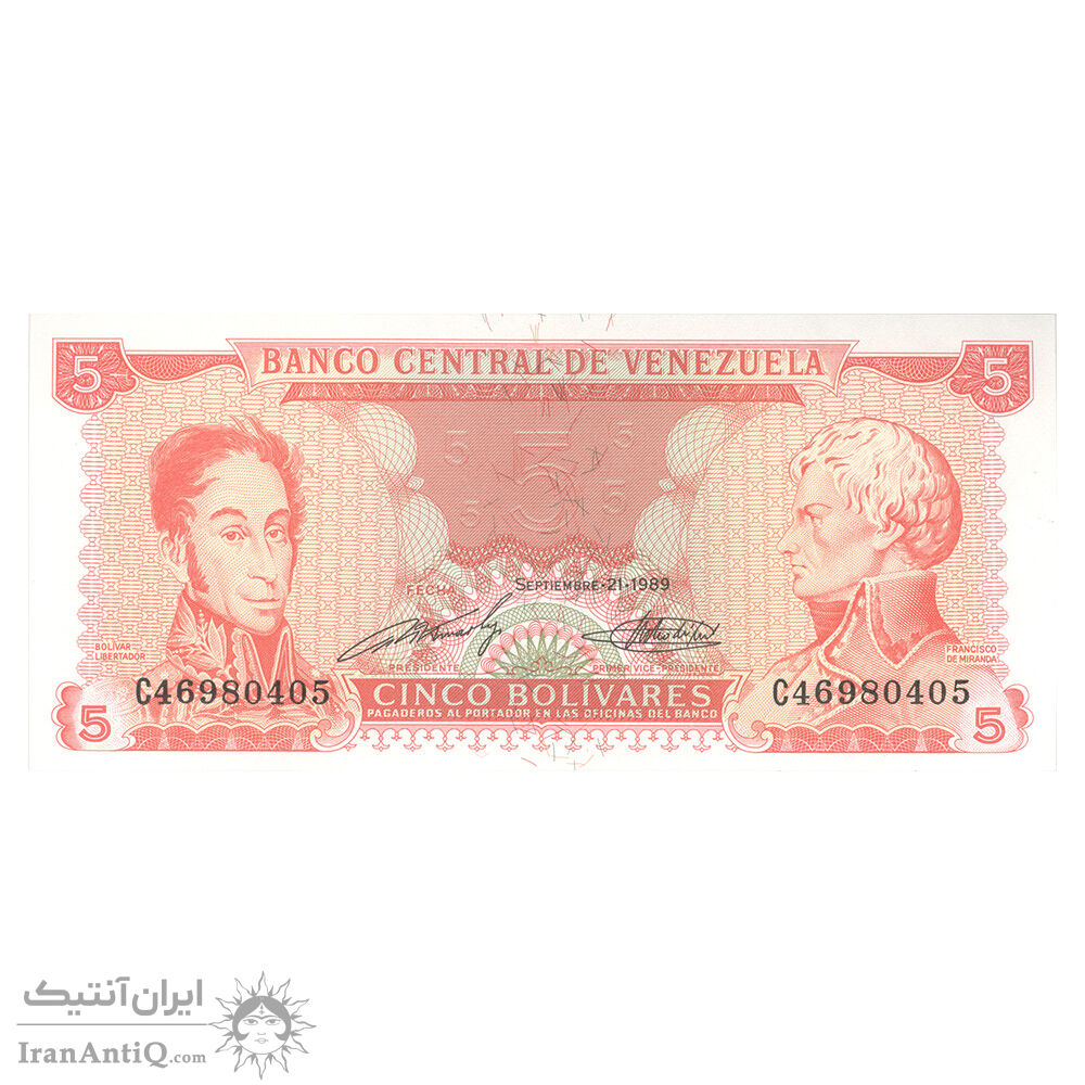 اسکناس 5 بولیوار 1989 جمهوری چهارم - تک - UNC65 - ونزوئلا
