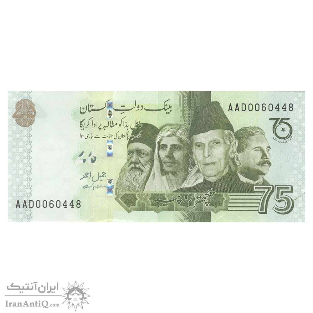 اسکناس 75 روپیه بدون تاریخ(2022) جمهوری اسلامی - یادبود هفتاد و پنجمین سال استقلال - تک - UNC63 - پاکستان