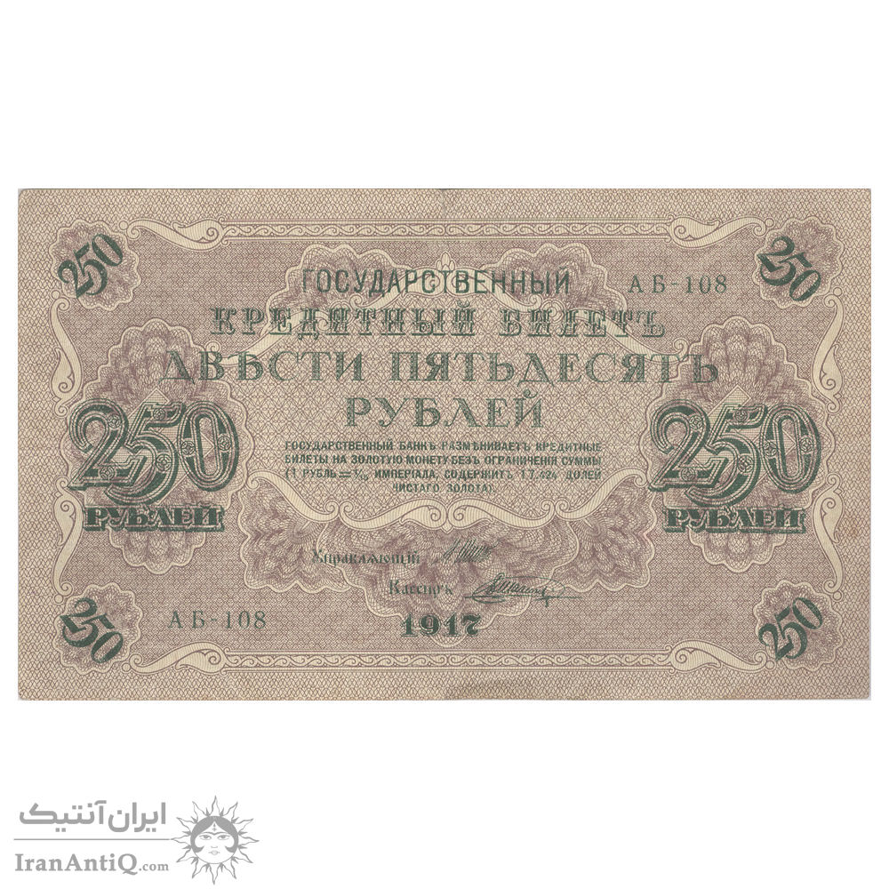 اسکناس 250 روبل 1917 مربوط به جنگ داخلی - تک - VF25 - روسیه