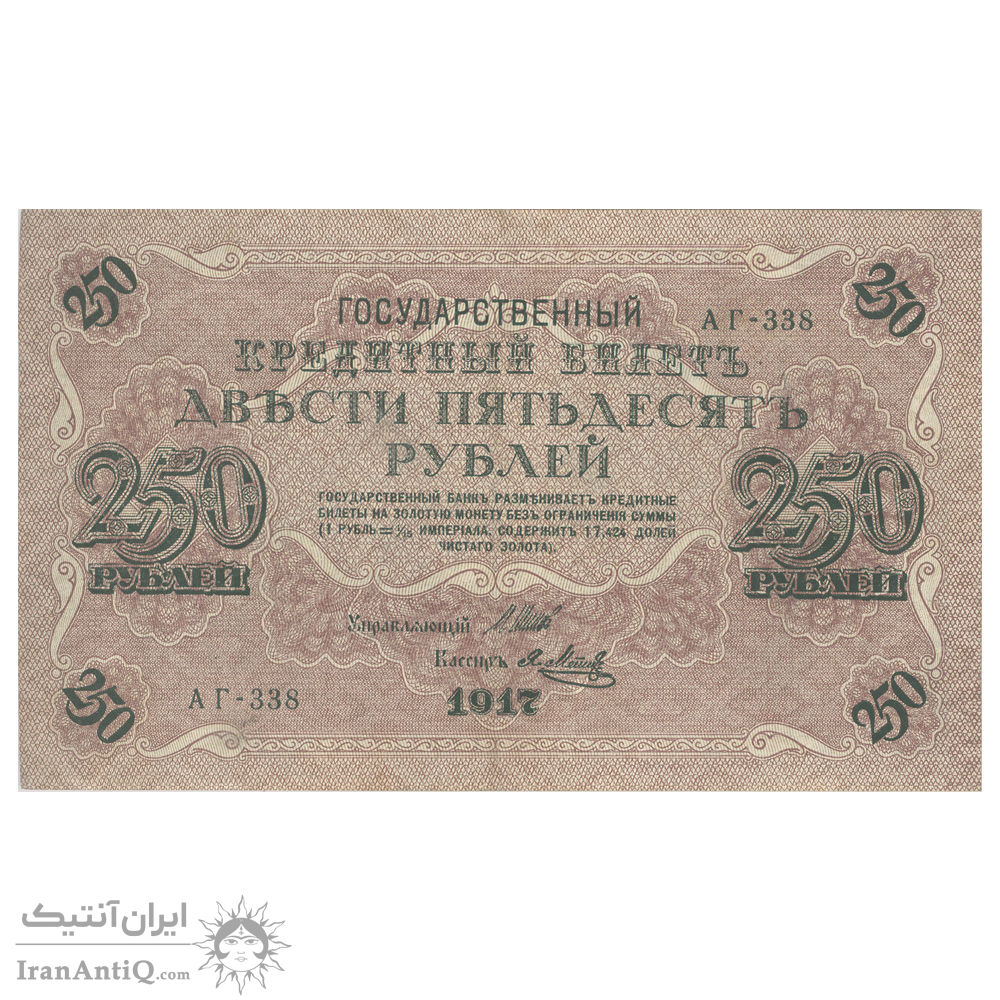 اسکناس 250 روبل 1917 مربوط به جنگ داخلی - تک - AU58 - روسیه