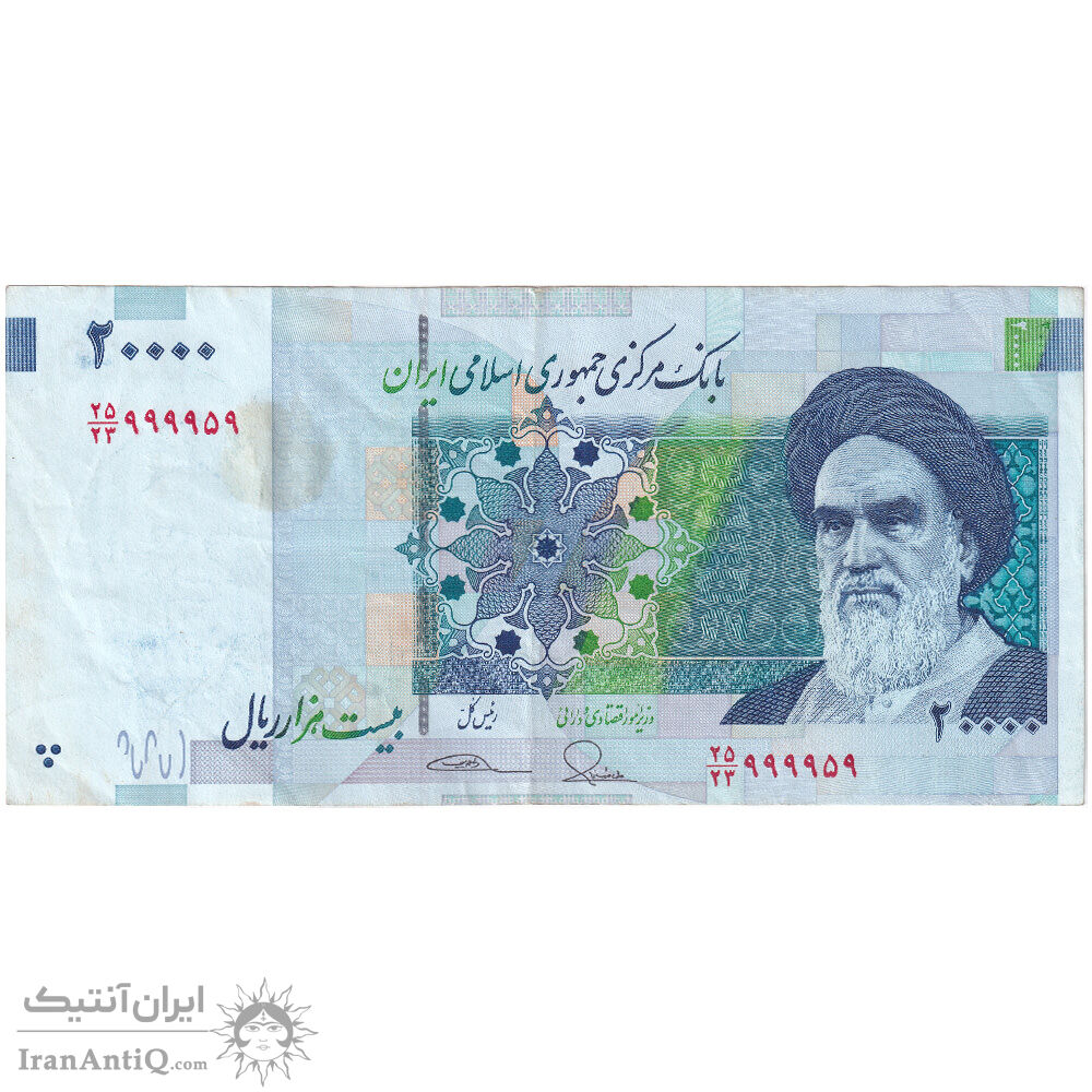 اسکناس 20000 ریال (طیب نیا - سیف) بادگیر - فیلیگران 8 -شماره مزاحم - تک - EF45 - جمهوری اسلامی